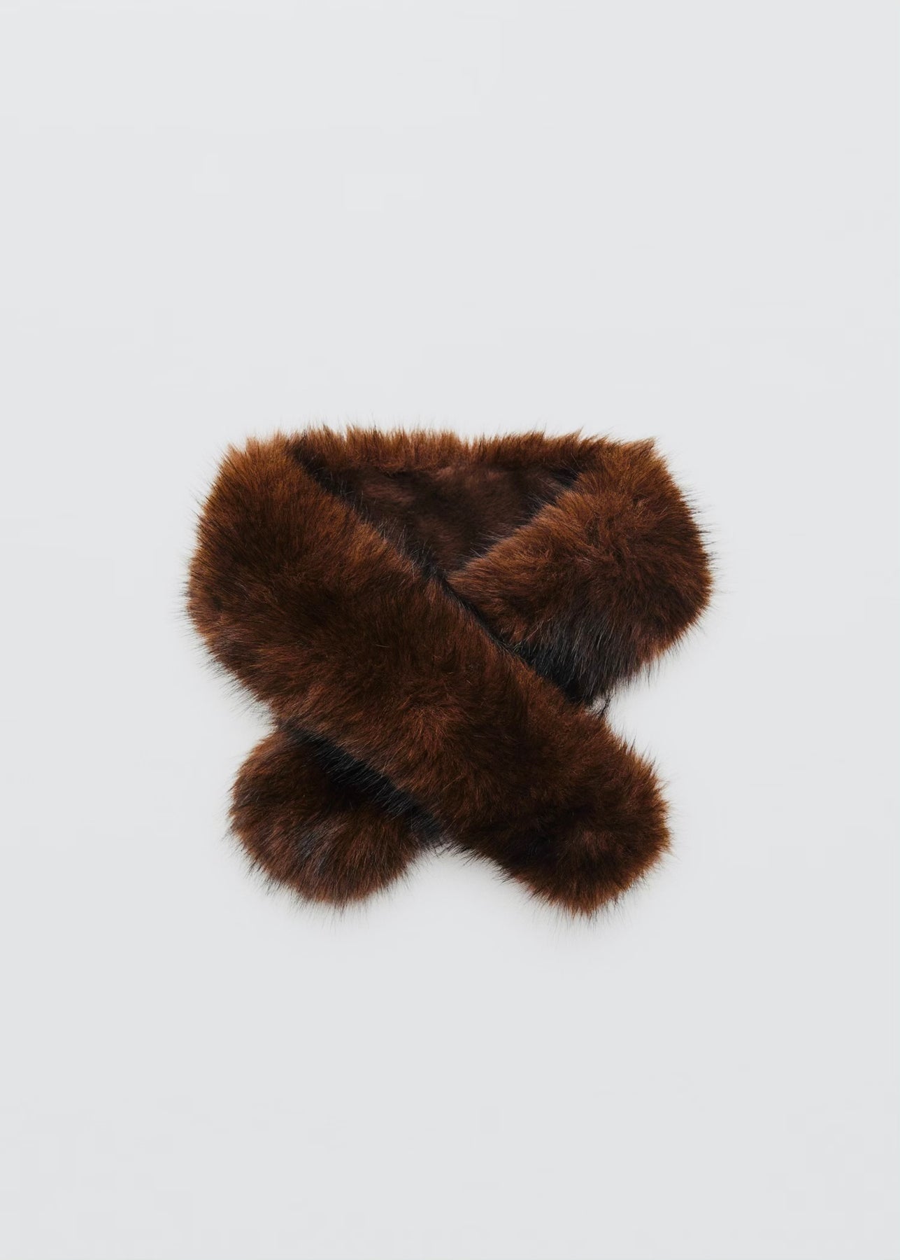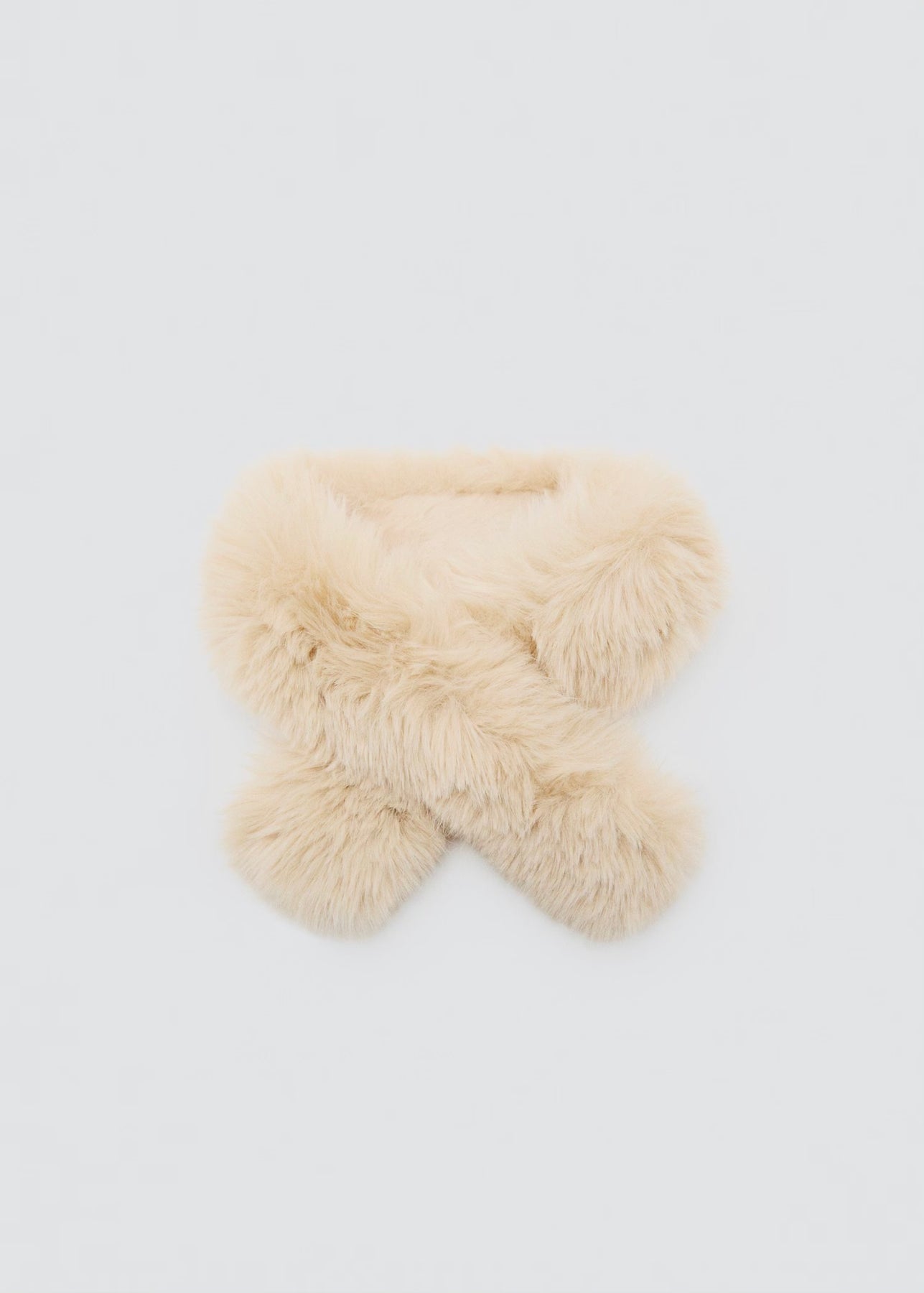 Écharpe effet poil, douce et chaude, avec fermeture à bride élastique pour un maintien pratique.