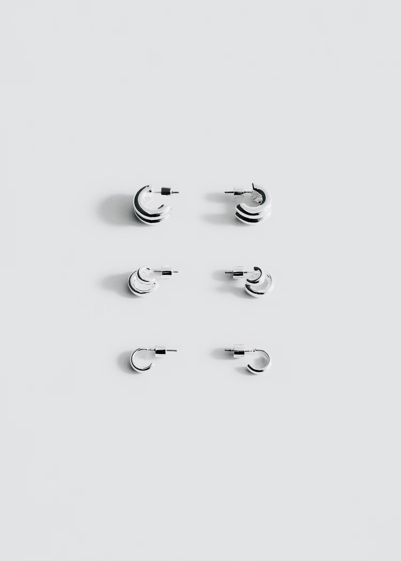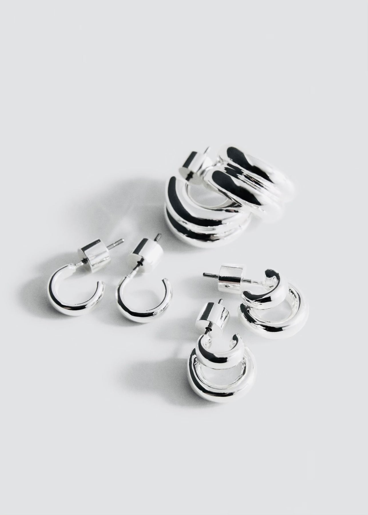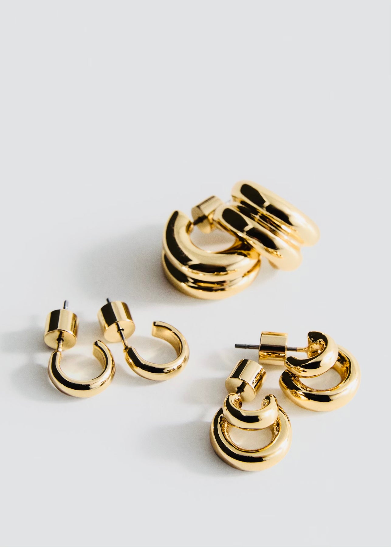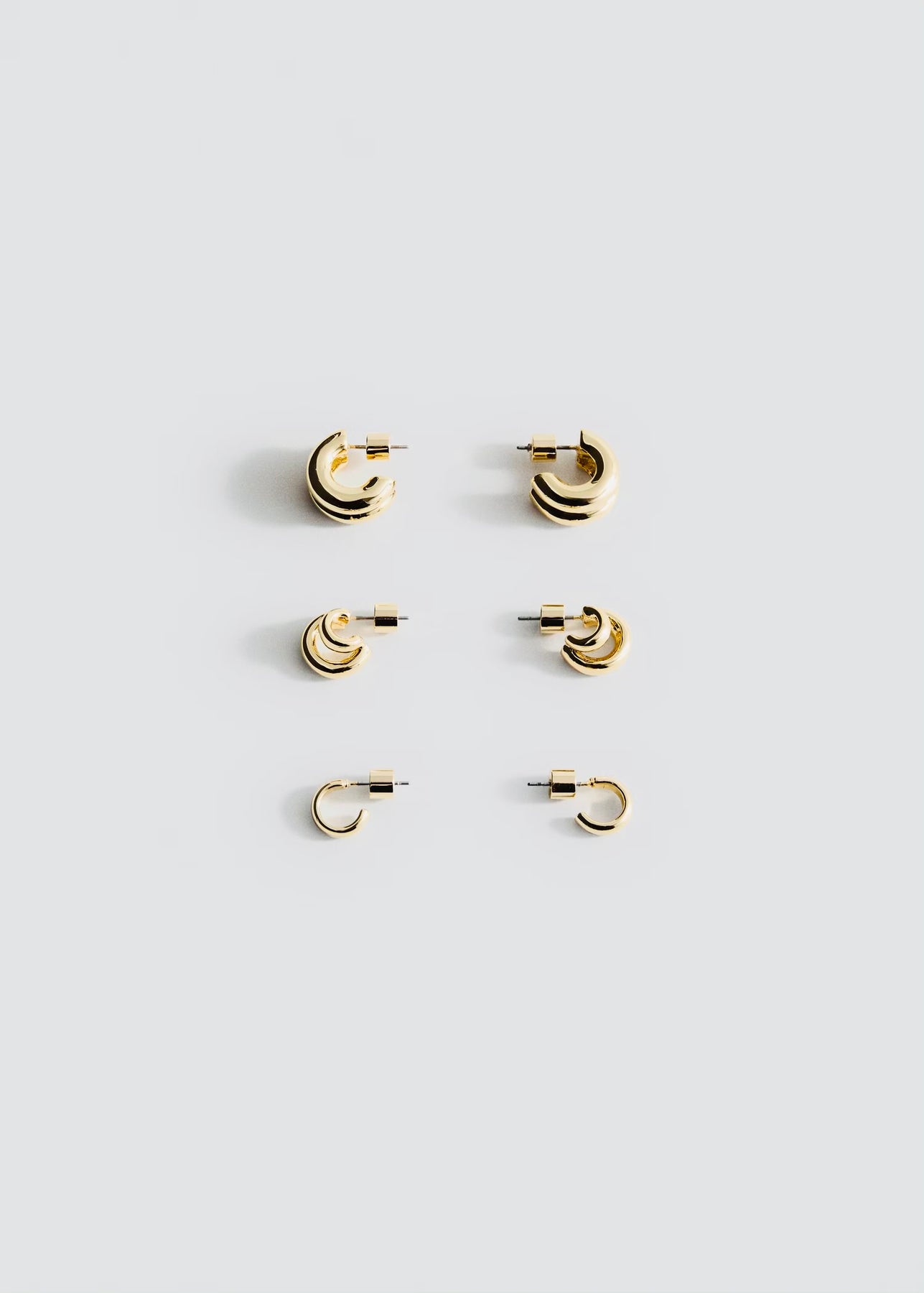 Pack de 3 paires de créoles au design varié. Format petit. Fermeture métallique à pression.