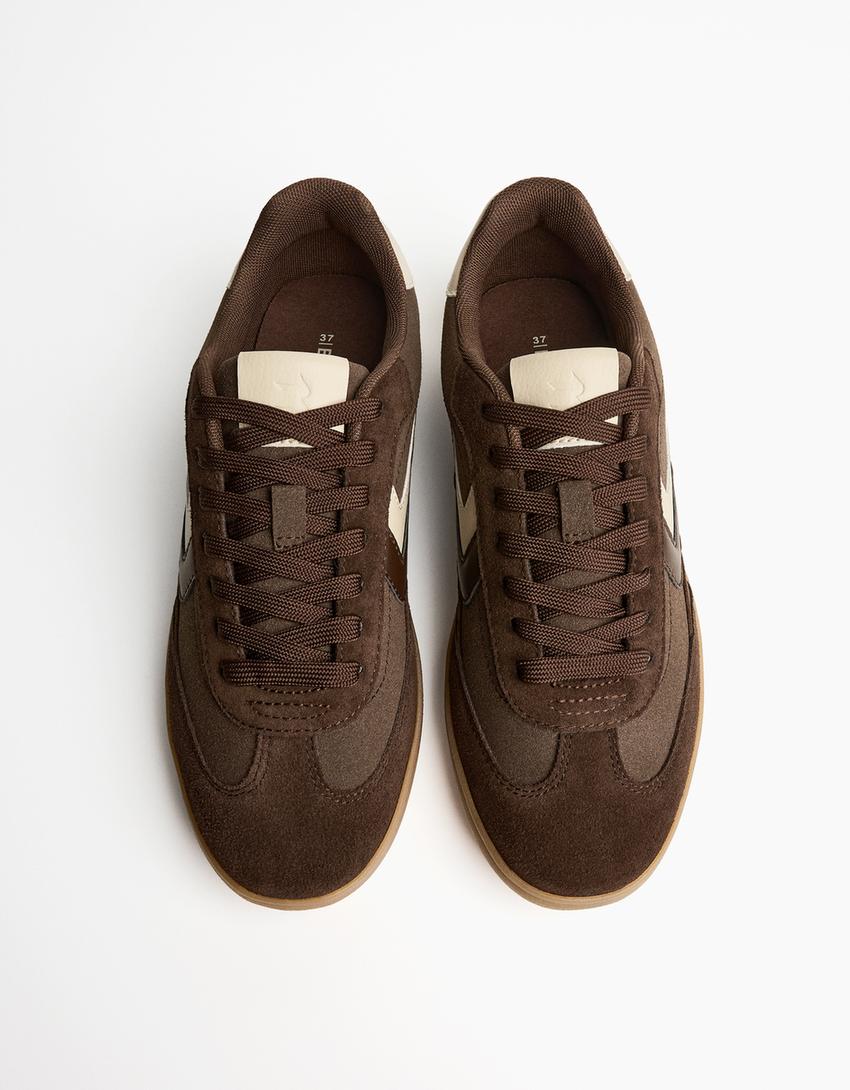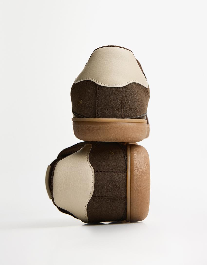 Baskets au style rétro avec design moderne et semelle résistante. La tige en polyuréthane et cuir de vache offre robustesse et confort, tandis que la doublure et la semelle intérieure recyclées assurent un choix plus durable. La semelle extérieure contient au moins 35% de styrène-butadiène recyclé certifié RCS.