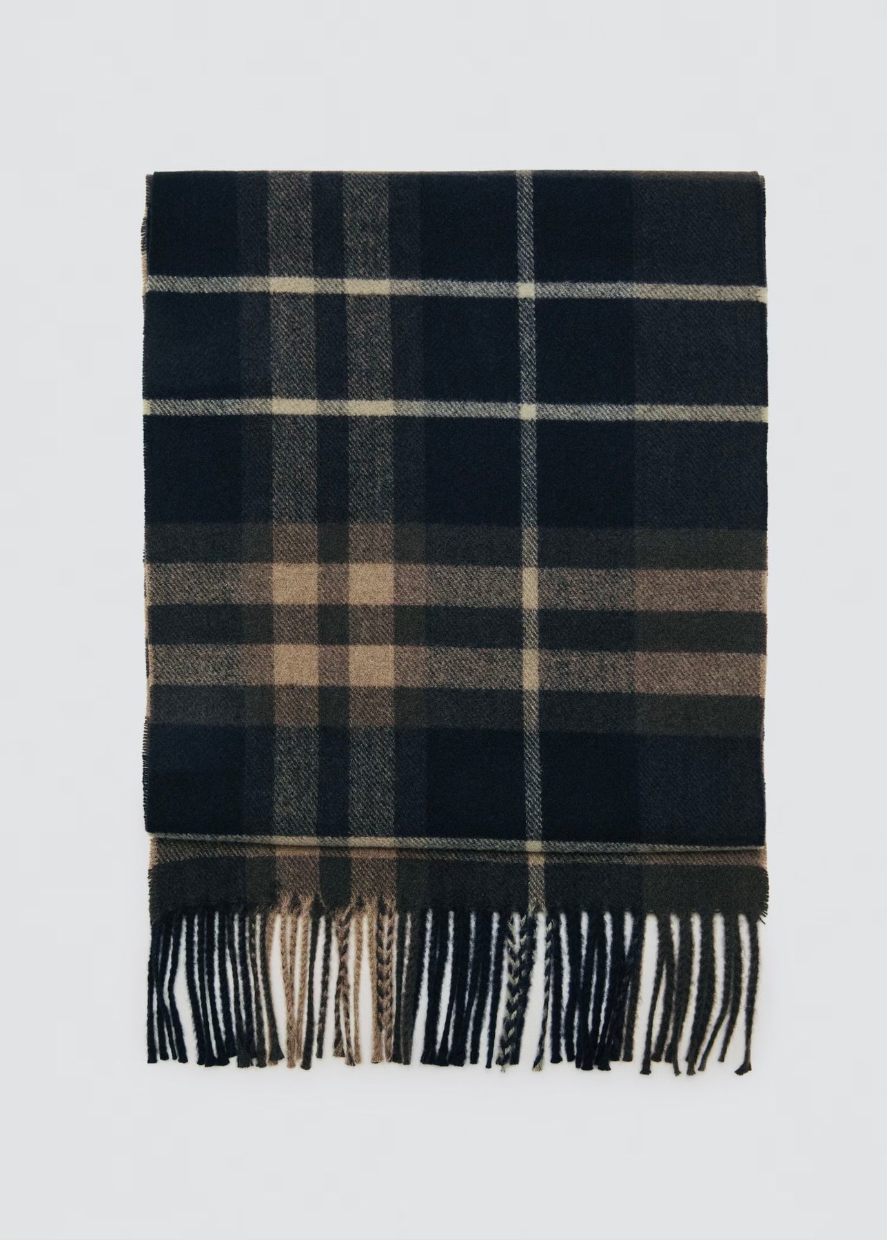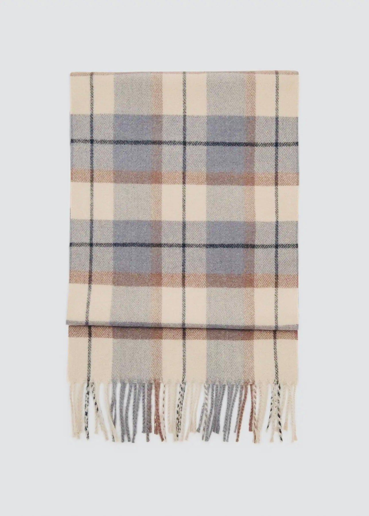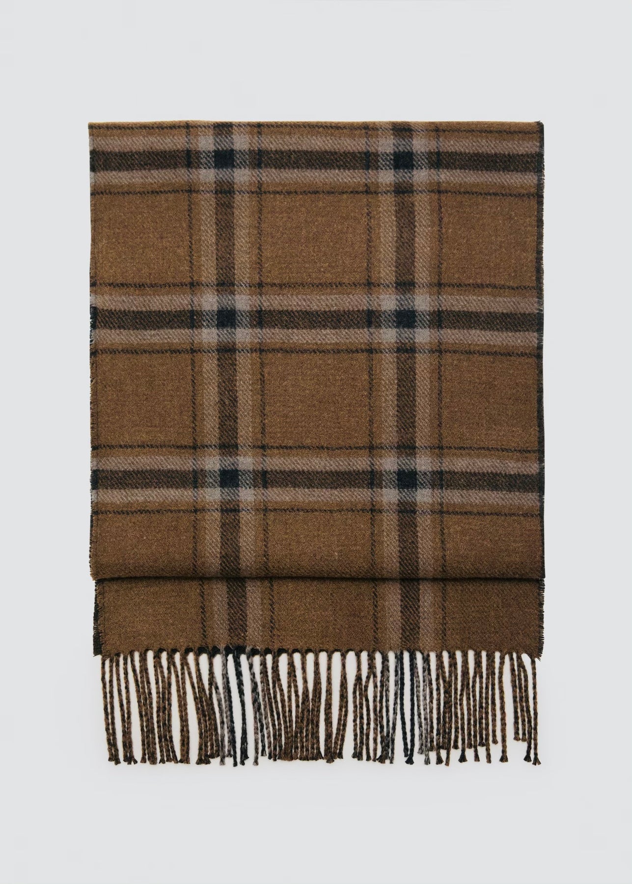 Tissu mélangé de viscose. Motif à carreaux écossais. Bords frangés. Sans fermeture.