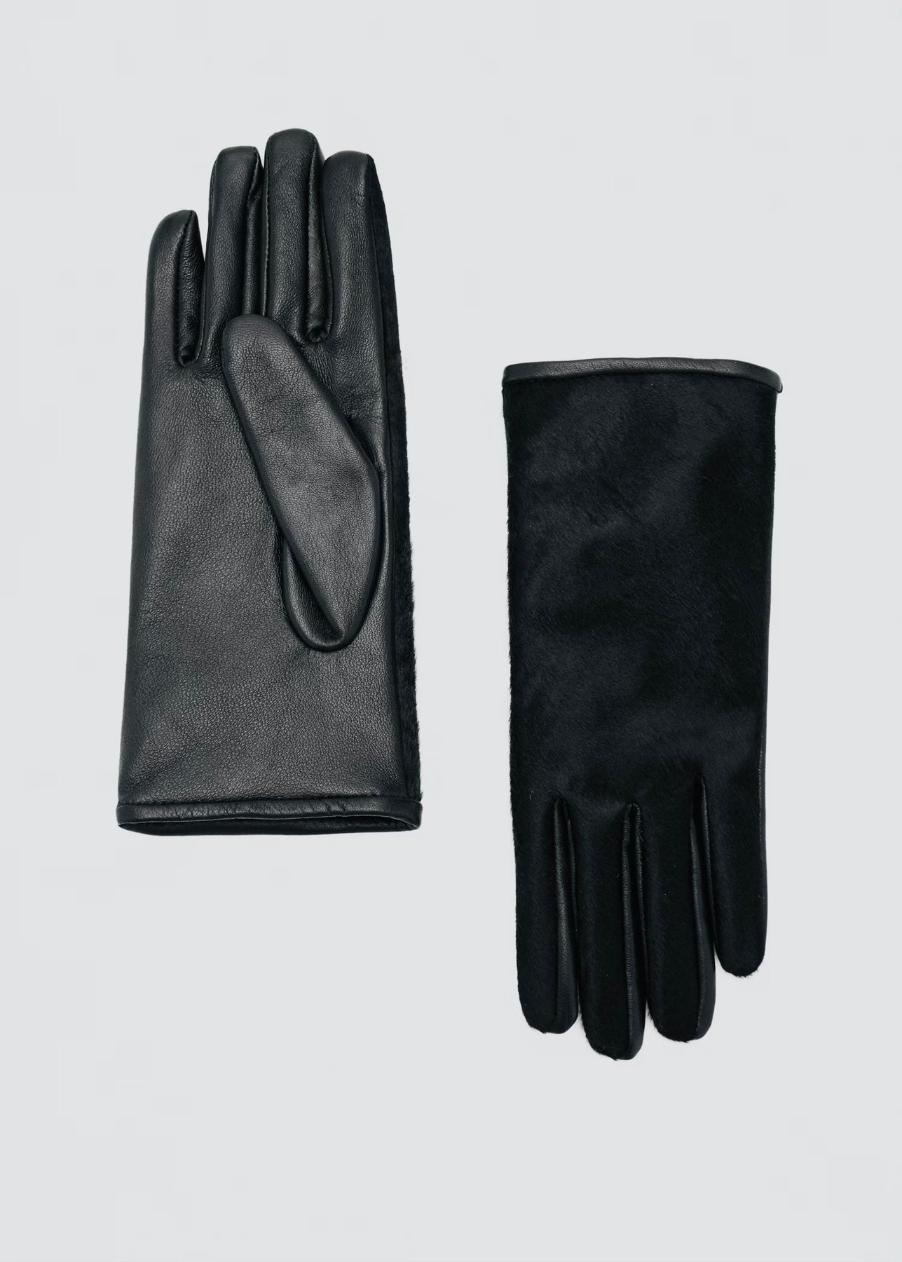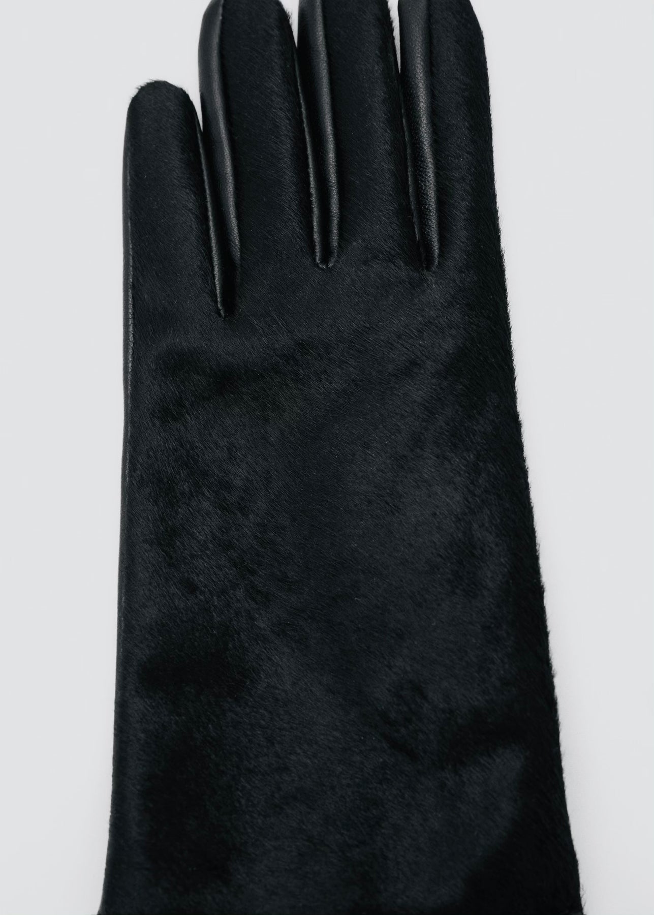Gants longs en cuir véritable, mêlant cuir bovin lisse et cuir de vachette à poils pour un effet combiné unique. Sans fermeture, avec une doublure intérieure douce pour un confort optimal.