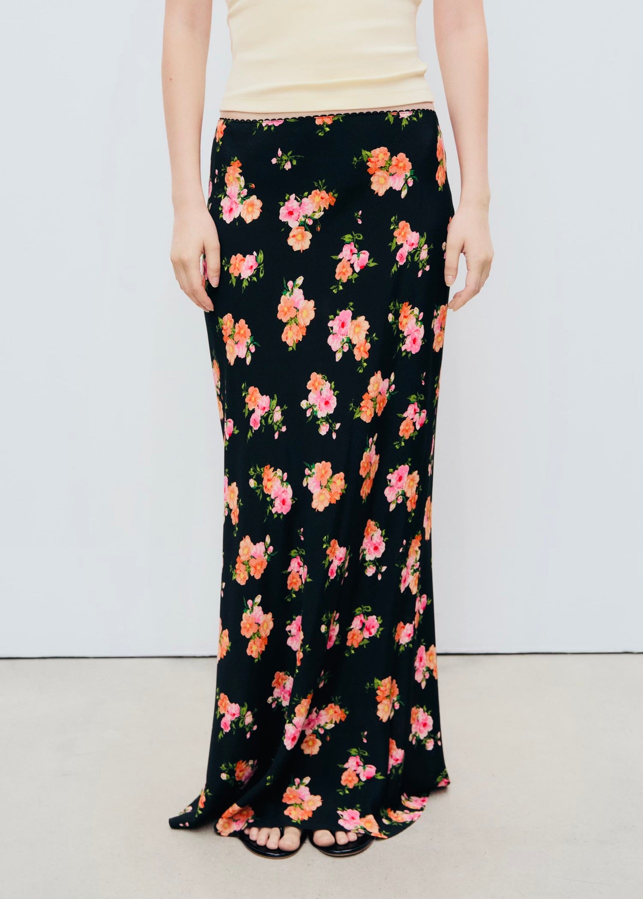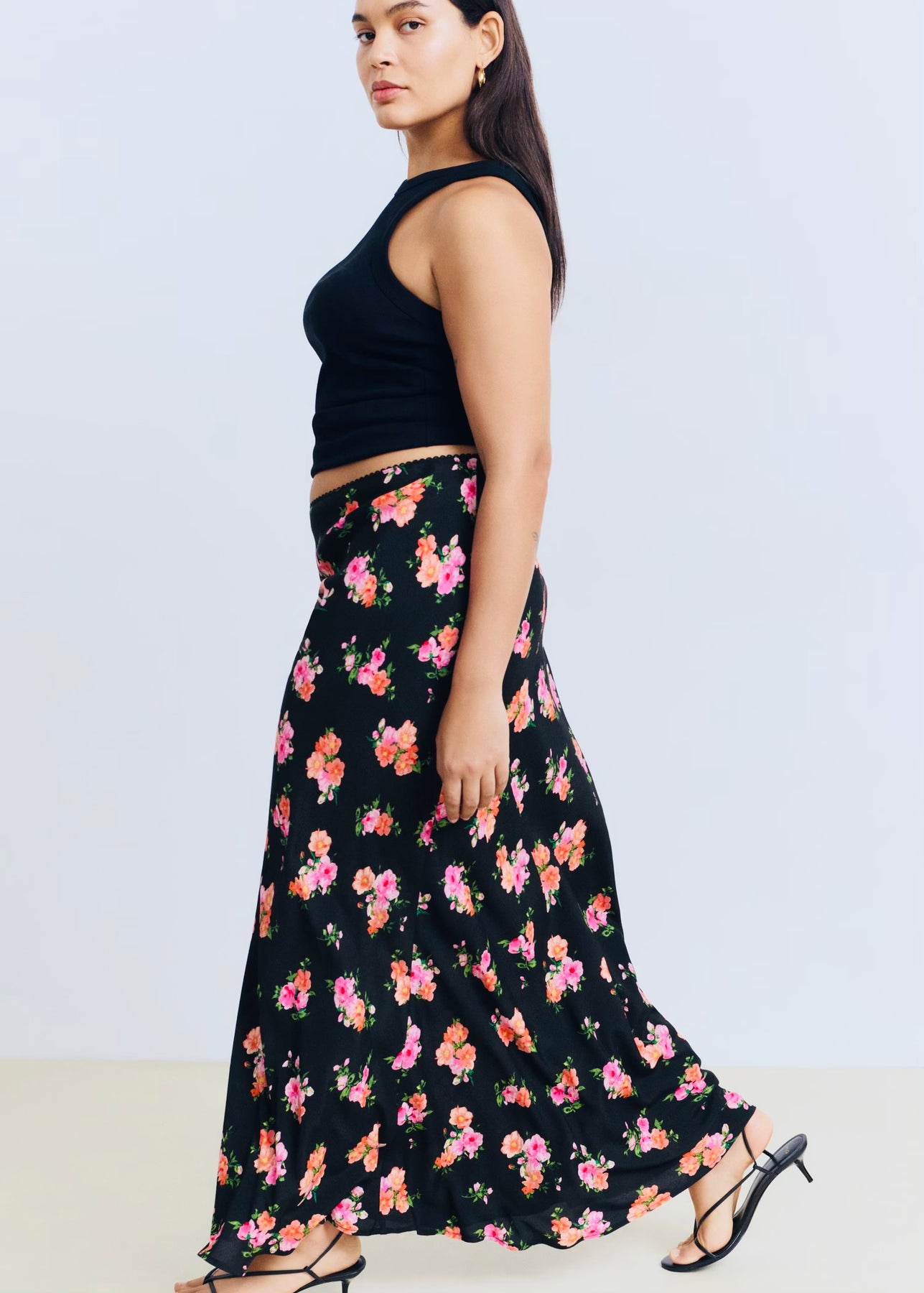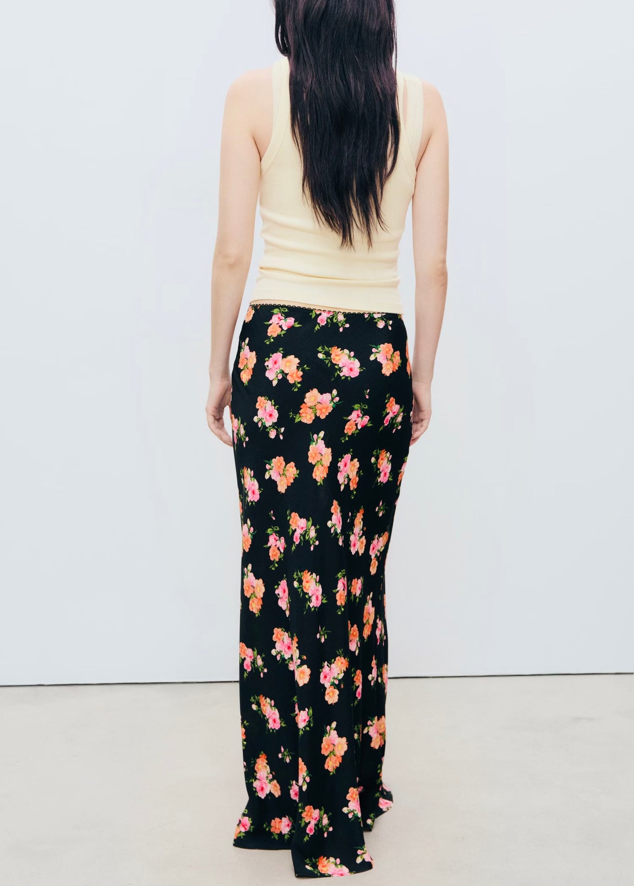 Cette jupe longue et évasée séduit par son imprimé floral délicat et sa finition en dentelle, apportant une touche romantique et féminine. Sa taille élastique assure un confort optimal, tandis que sa coupe fluide met en valeur la silhouette. Disponible également en grande taille.