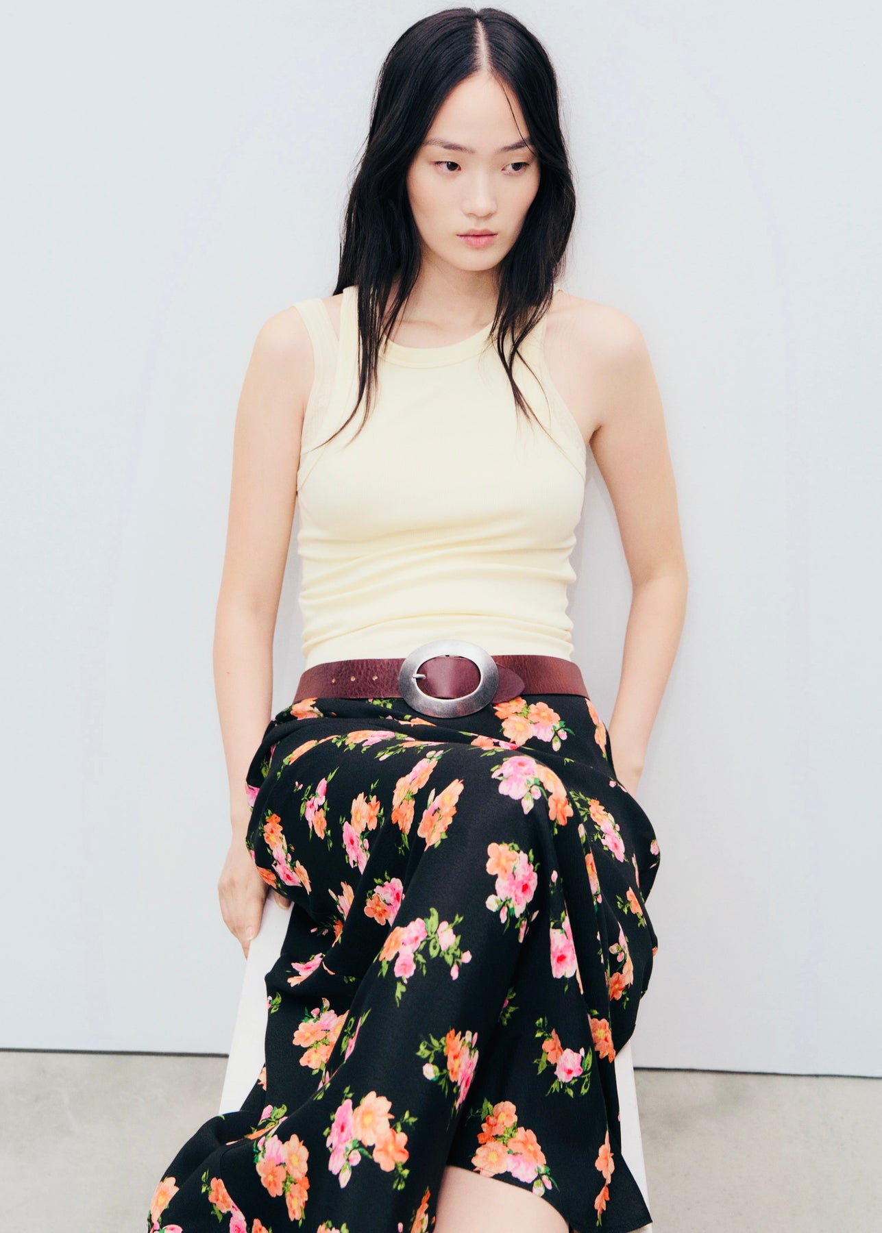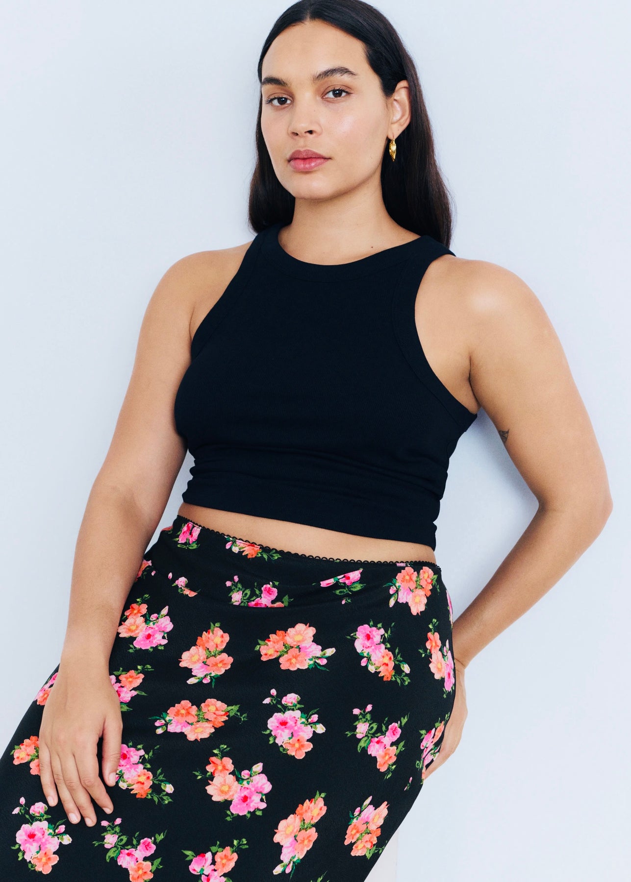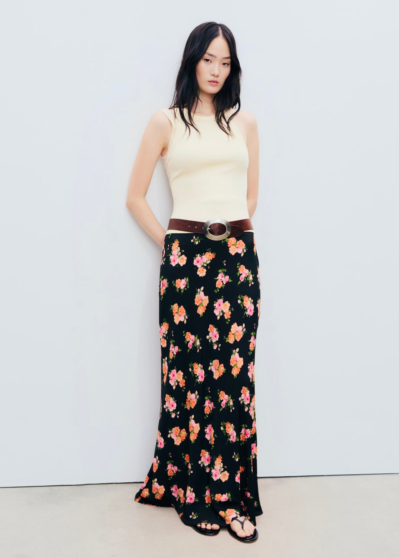 Cette jupe longue et évasée séduit par son imprimé floral délicat et sa finition en dentelle, apportant une touche romantique et féminine. Sa taille élastique assure un confort optimal, tandis que sa coupe fluide met en valeur la silhouette. Disponible également en grande taille.