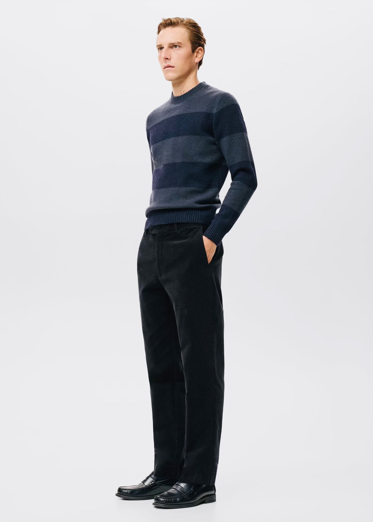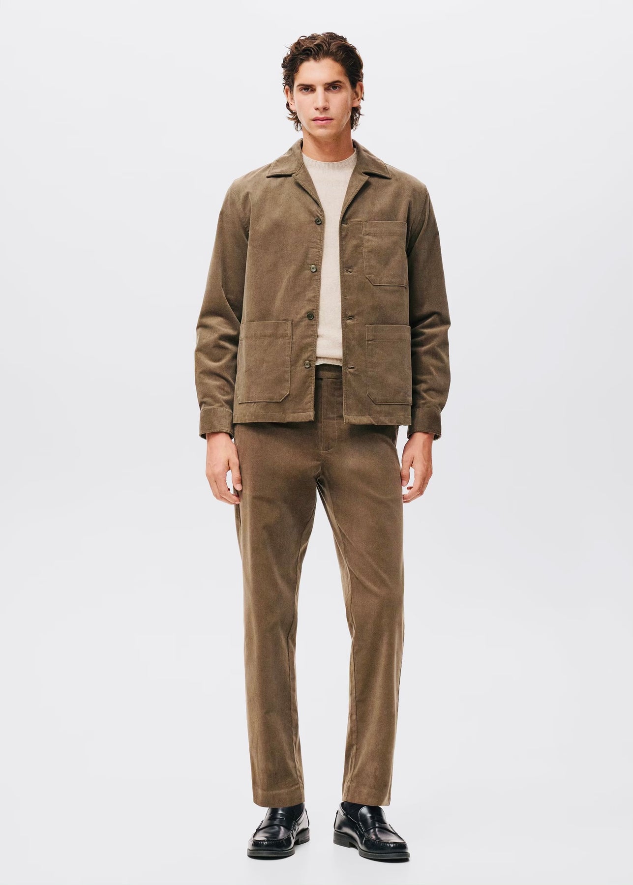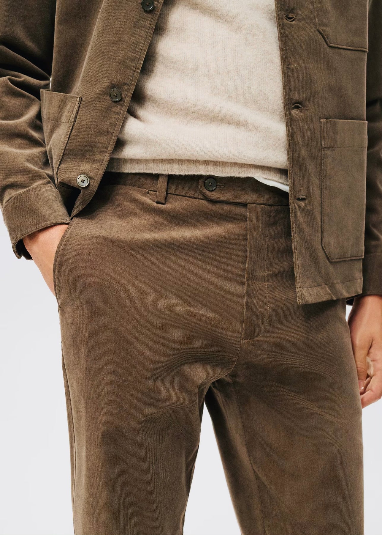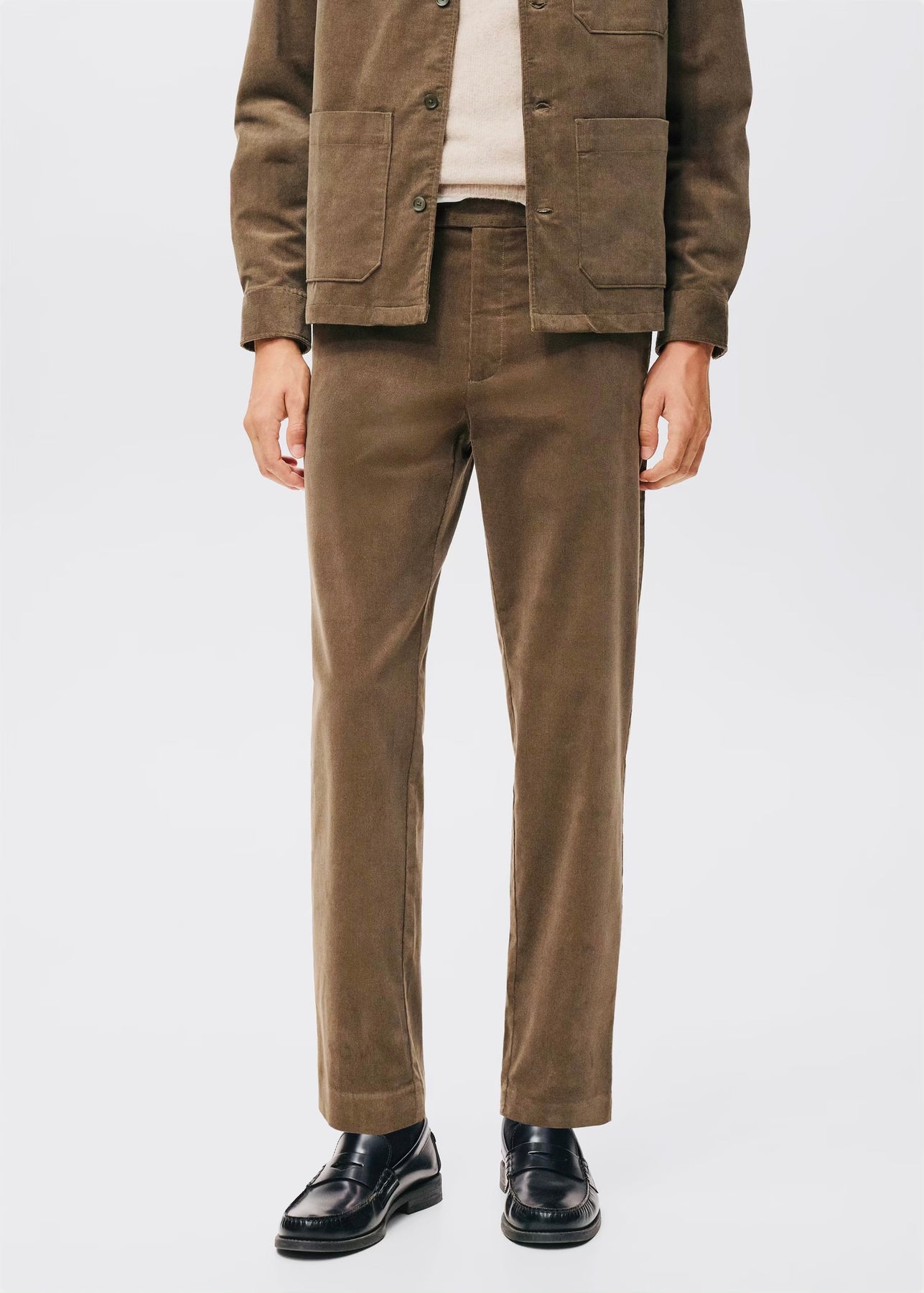 Pantalon coupe régulière en velours côtelé pour un look élégant et confortable.