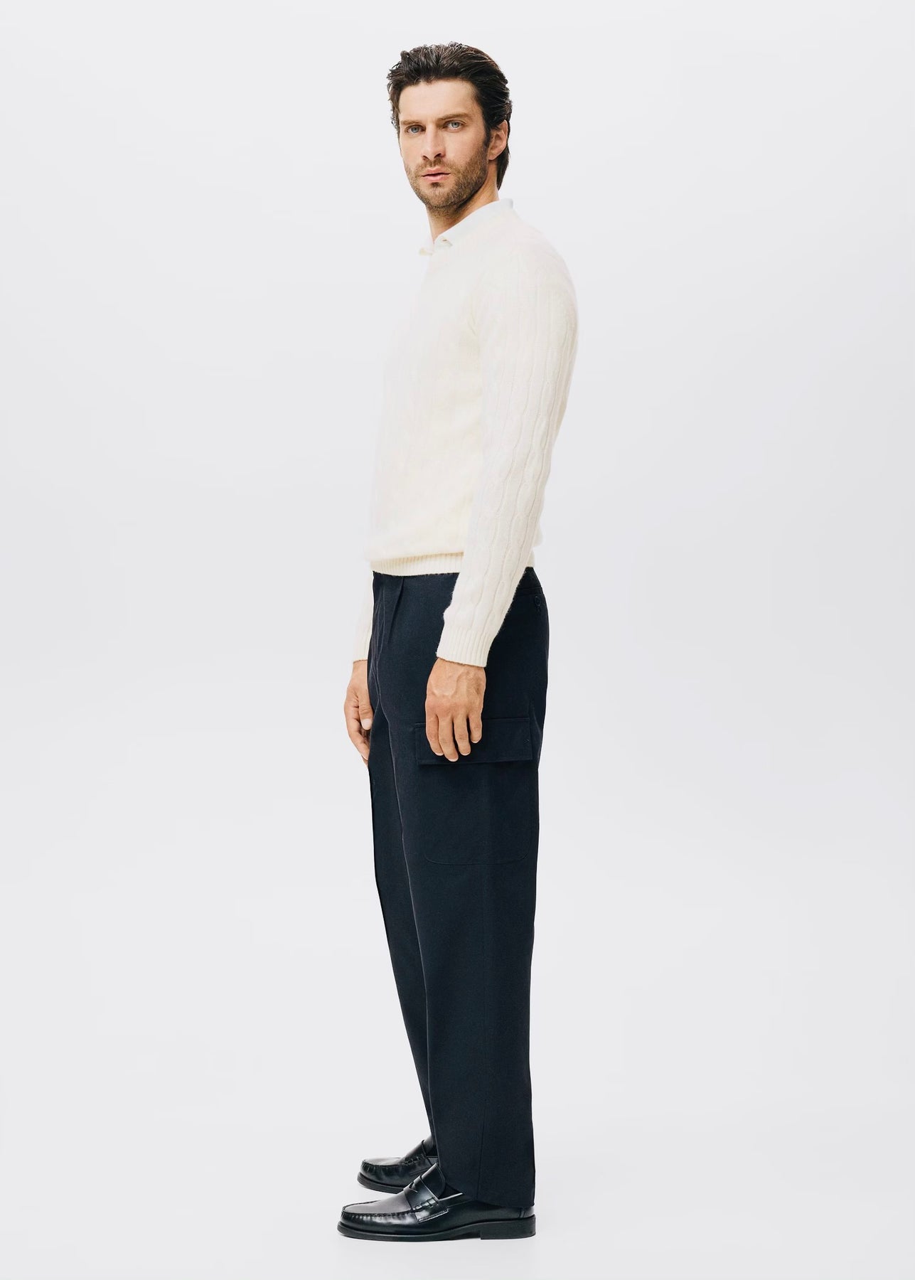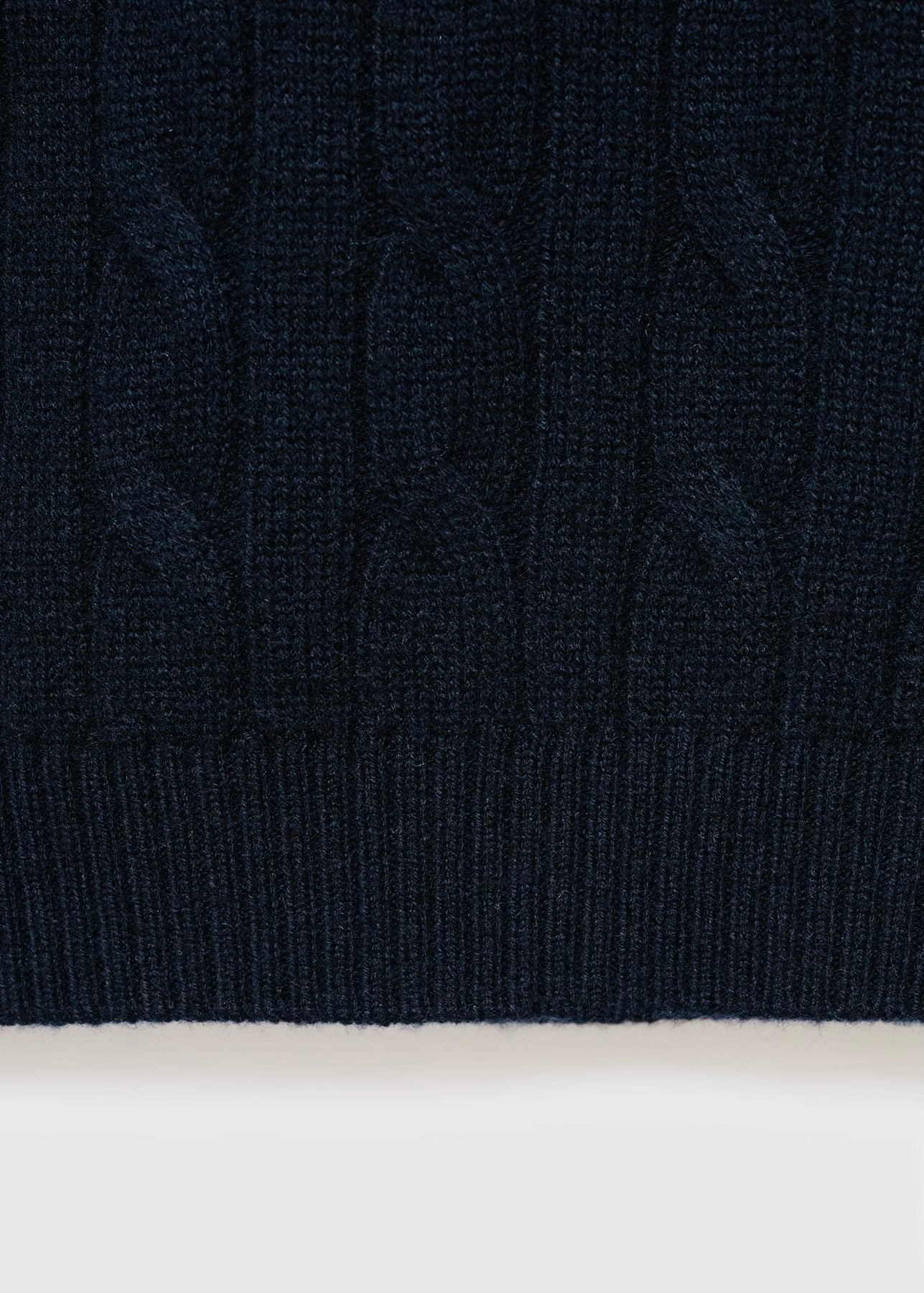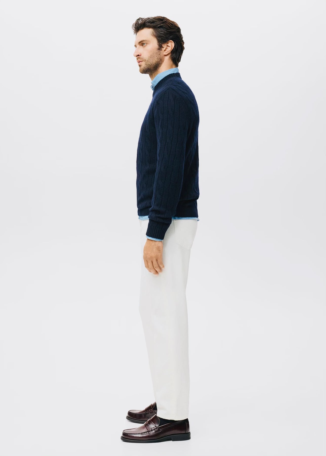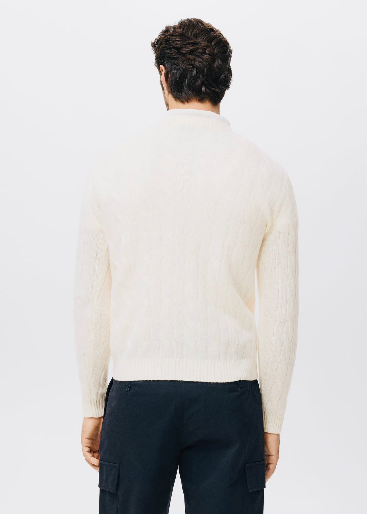 Chic et confortable, ce pull à maille torsadée présente une silhouette droite et un col rond classique. Les finitions côtelées au col, aux manches et à la base ajoutent une touche soignée et intemporelle à ce modèle élégant.