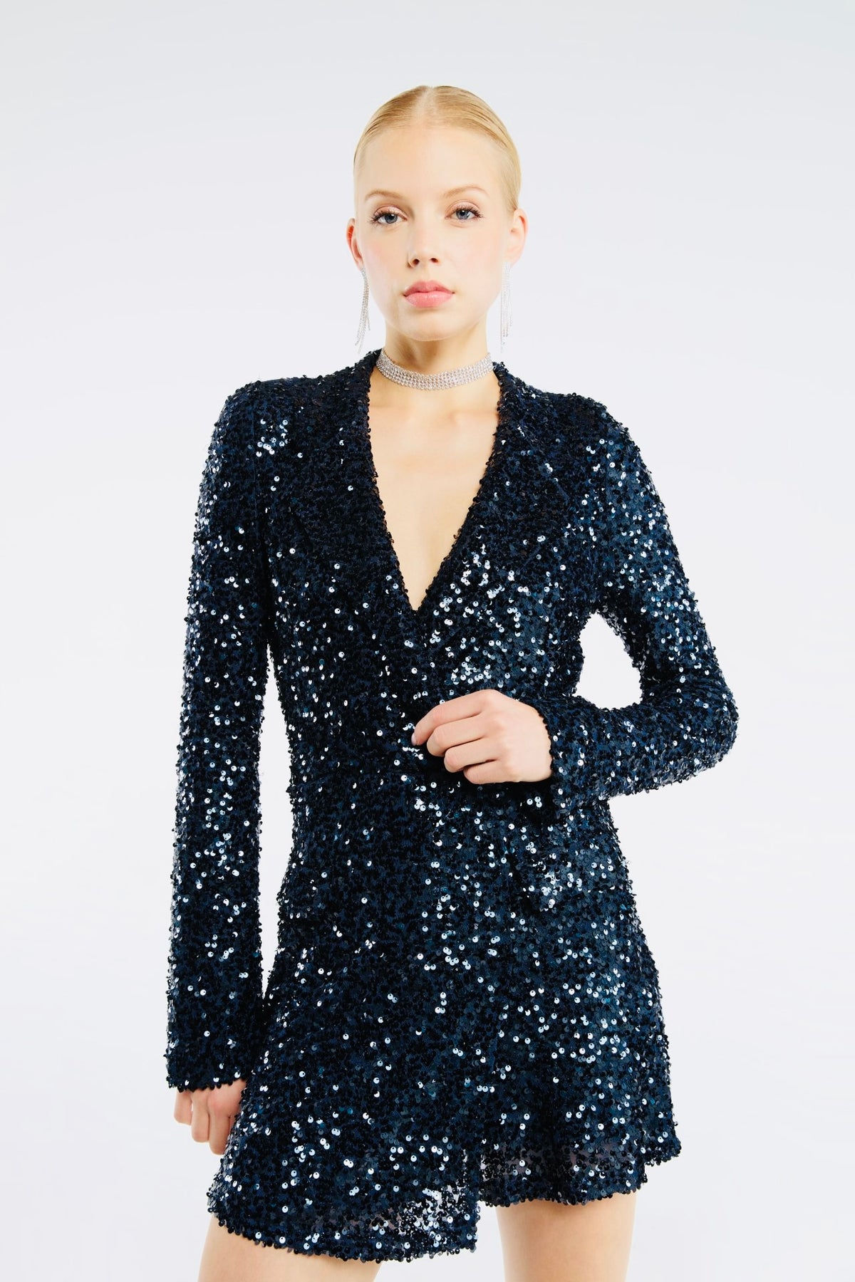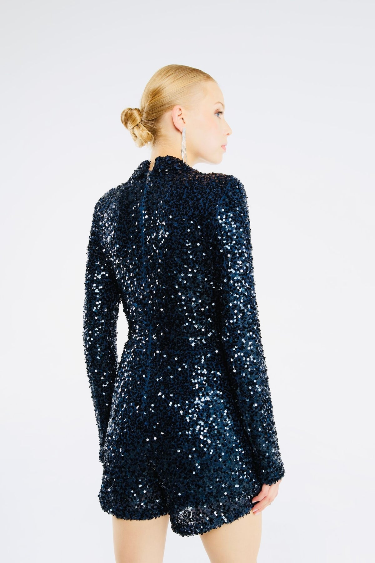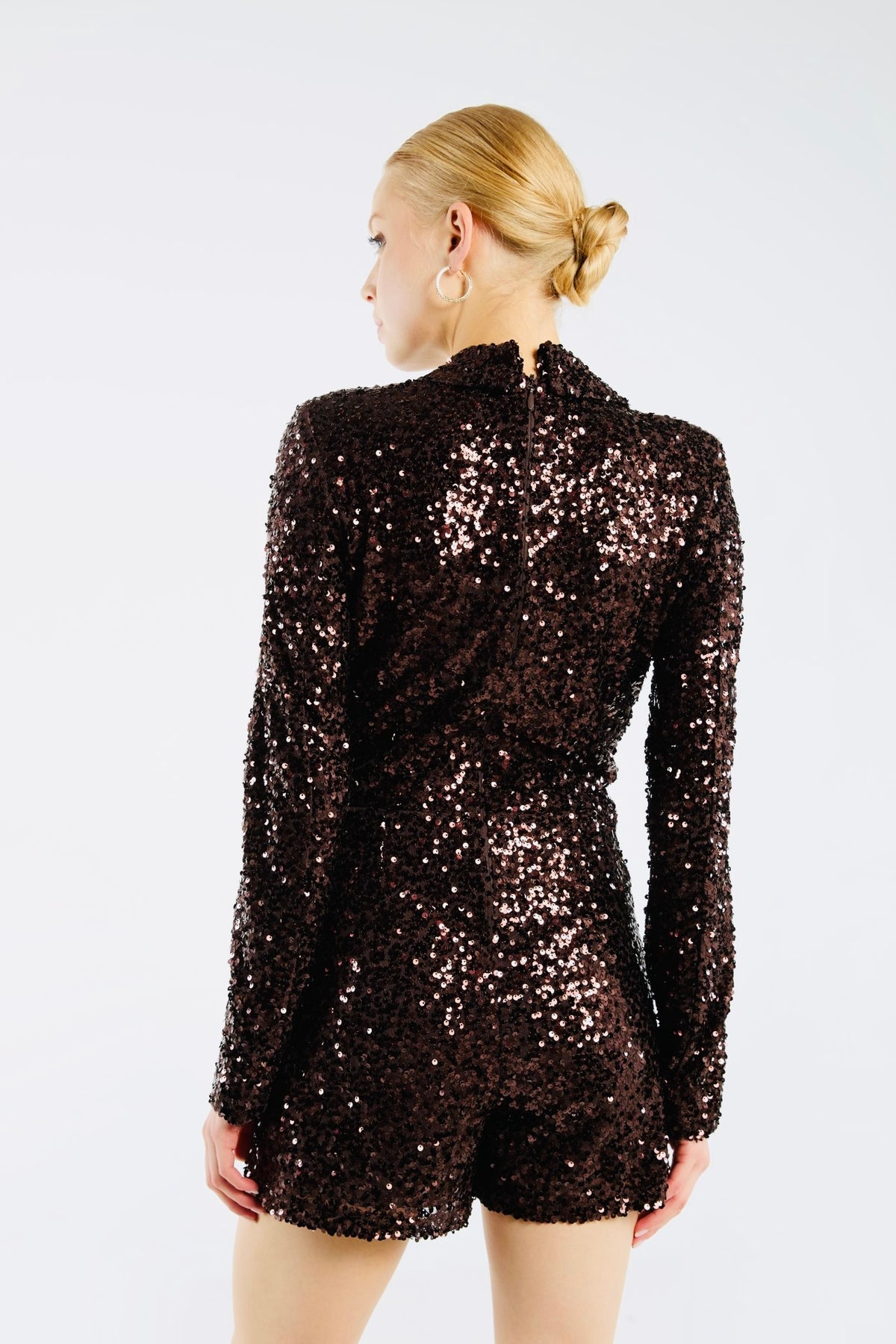 Combinaison élégante conçue pour les grandes occasions, ornée de paillettes pour un effet scintillant. Sa coupe fluide et son tissu extensible assurent confort et raffinement lors de vos soirées.