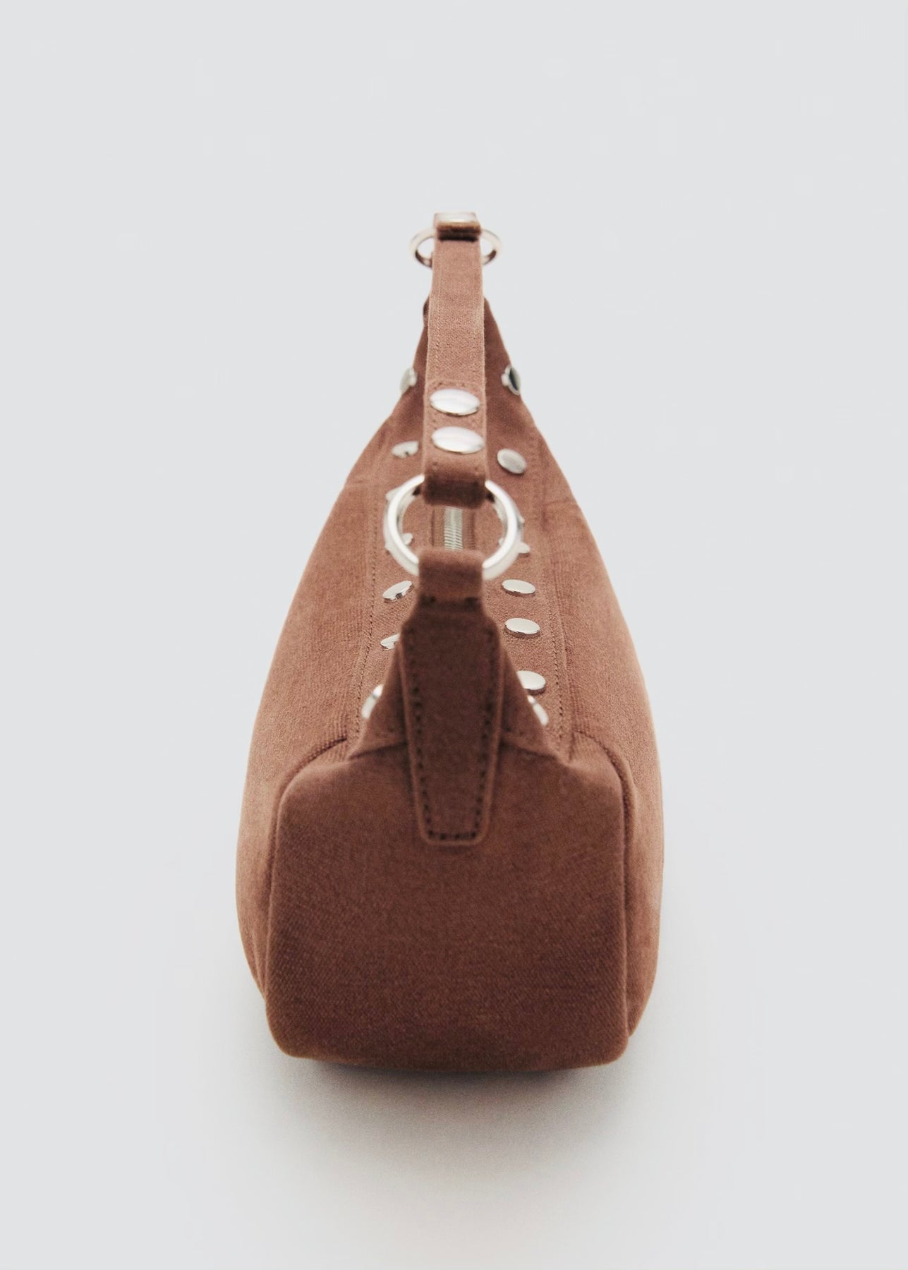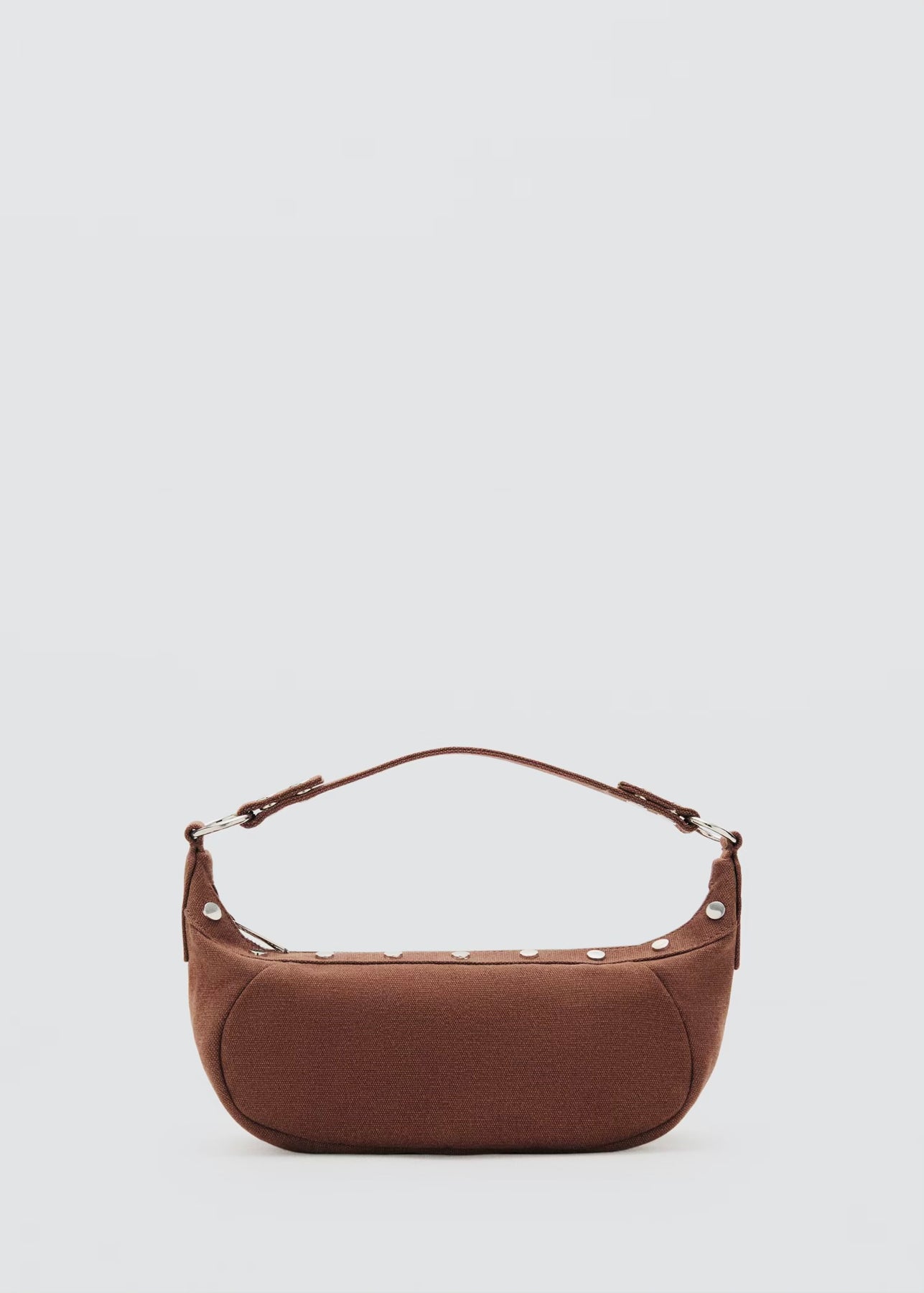 Petit sac porté épaule en coton orné de clous décoratifs, alliant style et praticité. Équipé d’une anse courte pour un porté confortable, il se ferme à l’aide d’une fermeture éclair et possède une doublure intérieure pour protéger vos effets personnels. Idéal pour compléter vos tenues avec une touche tendance.