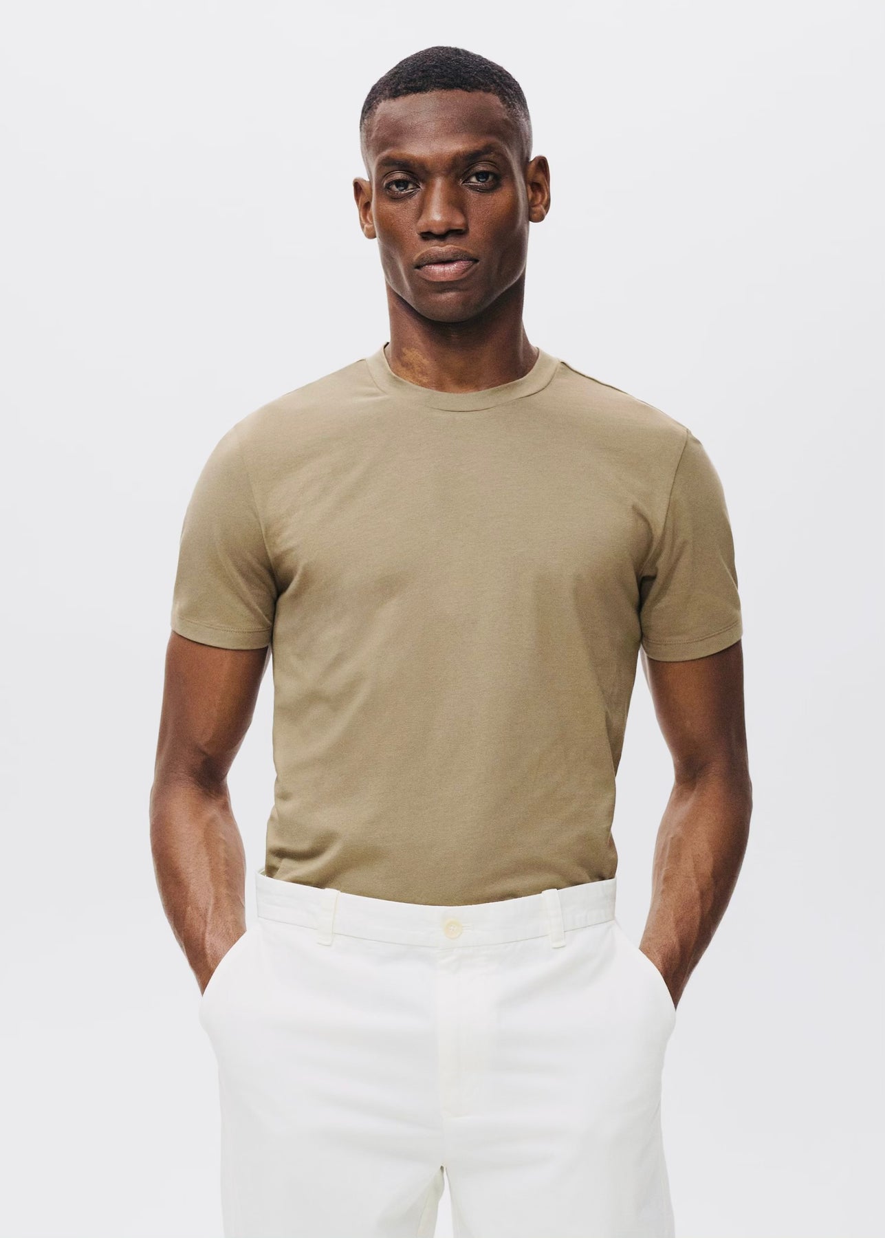 T-shirt slim fit confectionné dans un tissu léger en coton stretch pour un confort optimal et une liberté de mouvement. Design basique et polyvalent, à manches courtes, col rond et ourlet droit. Parfait pour un usage quotidien grâce à son tissu durable et respirant.