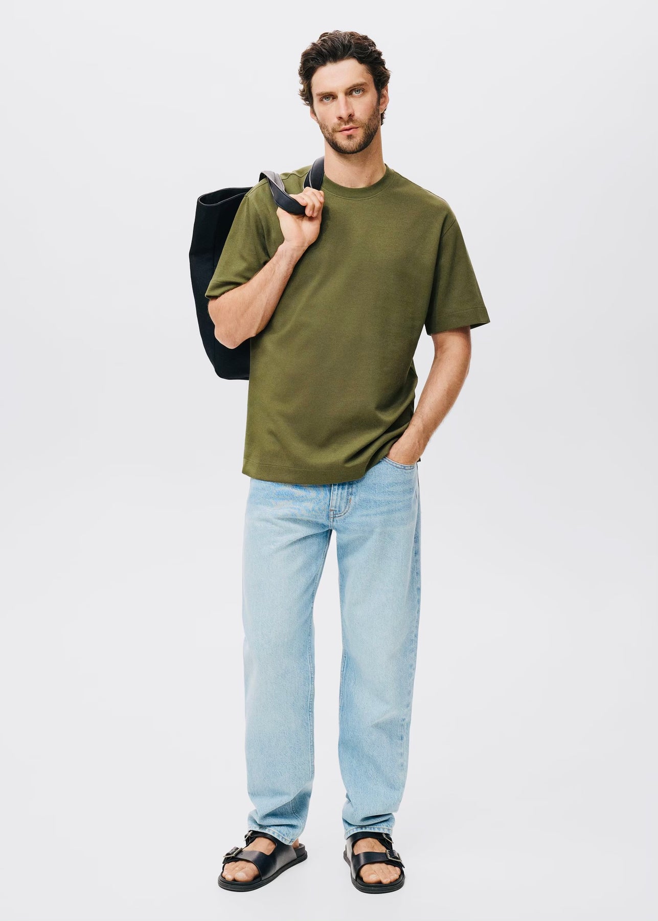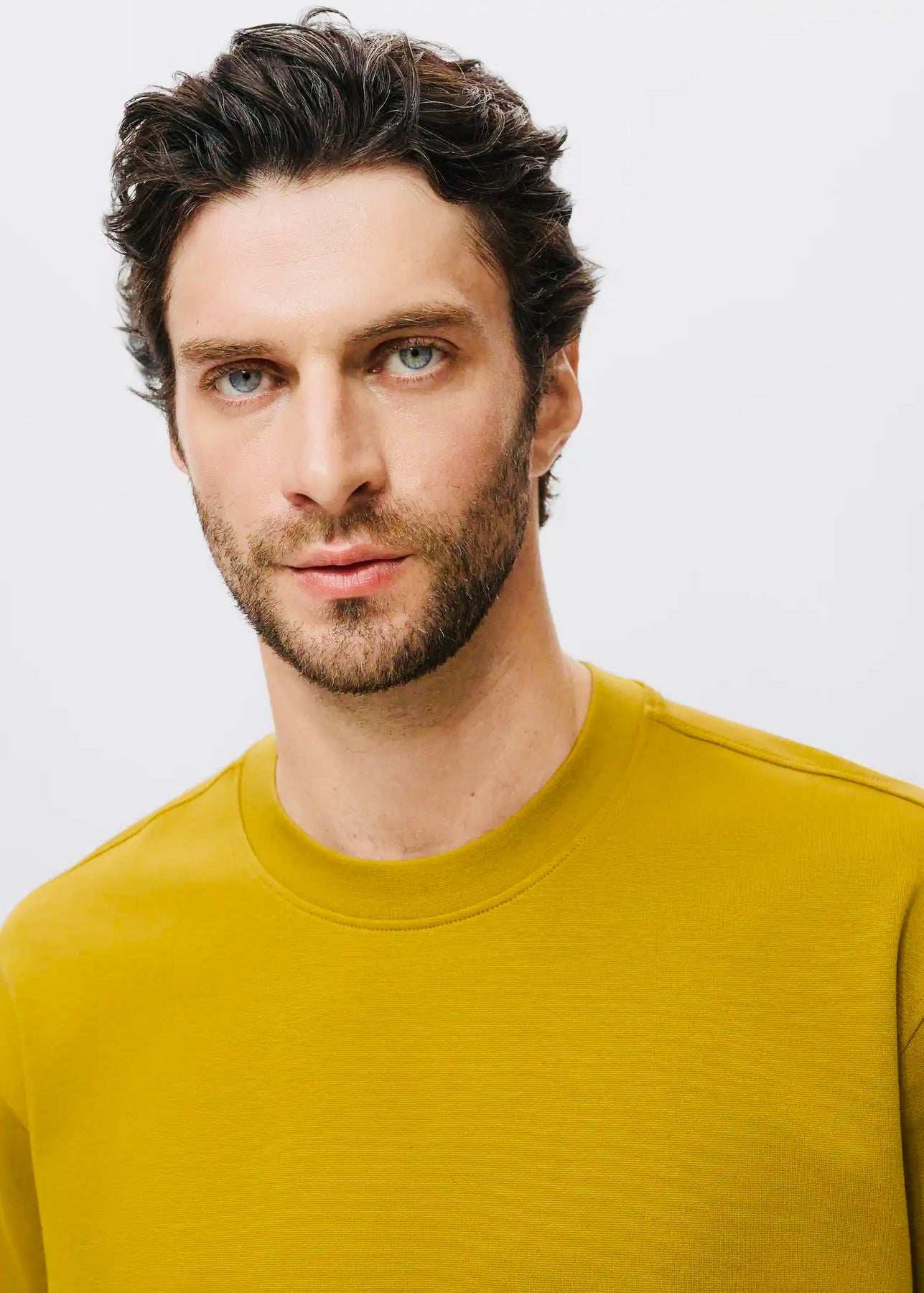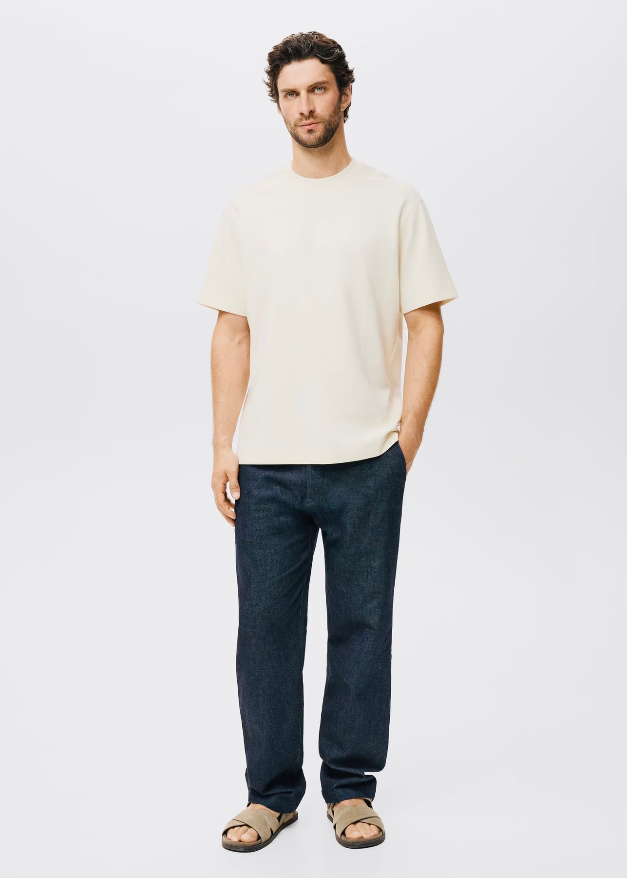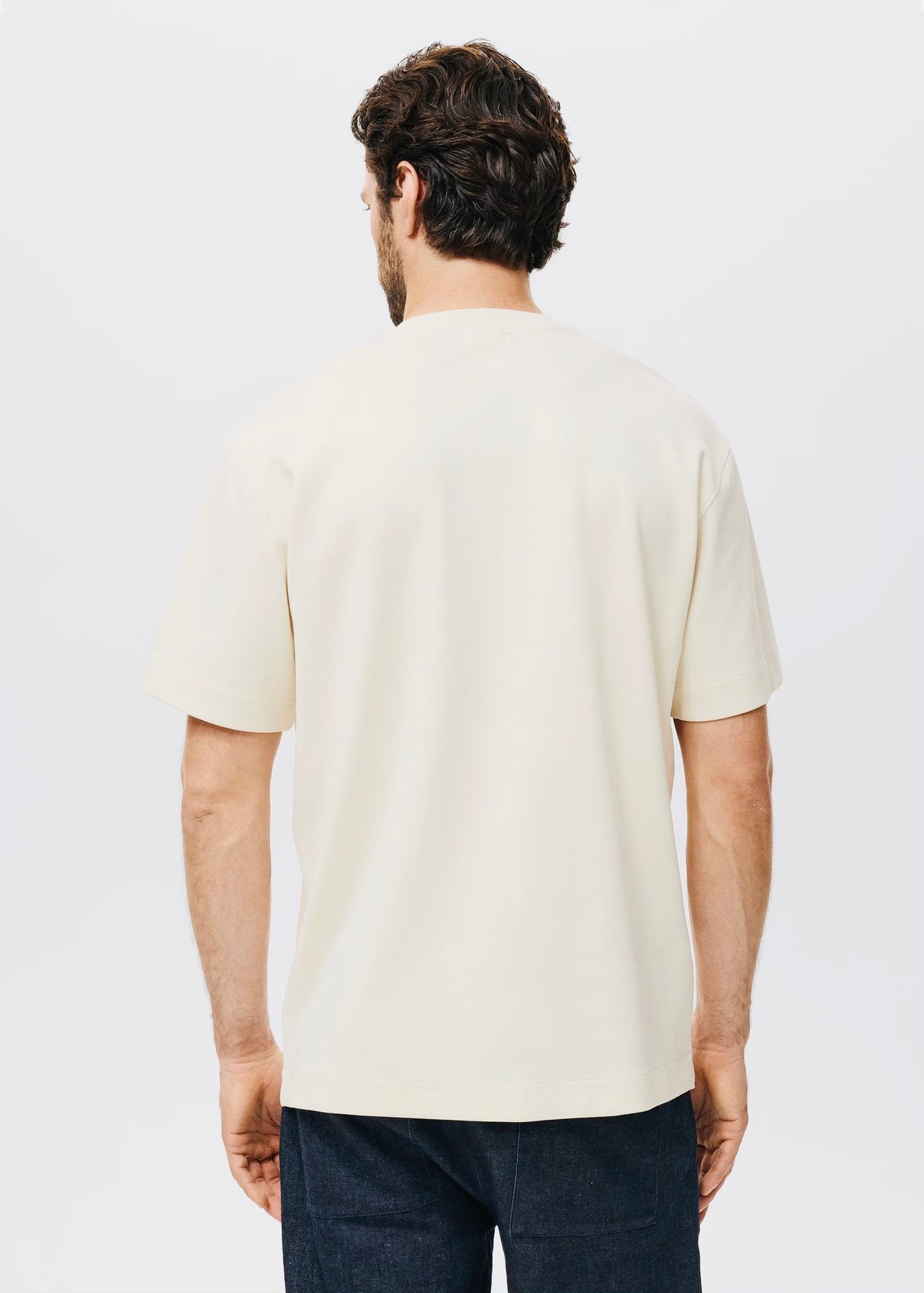 T-shirt à coupe décontractée (relaxed-fit), confectionné dans un tissu de sweat-shirt doux en mélange de coton. Il présente un col rond et des manches courtes, offrant un look confortable et moderne.