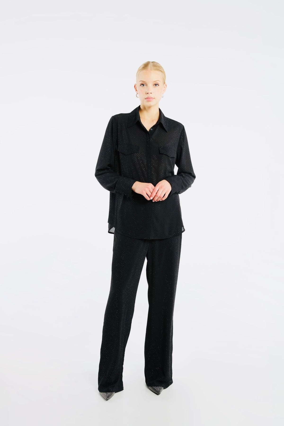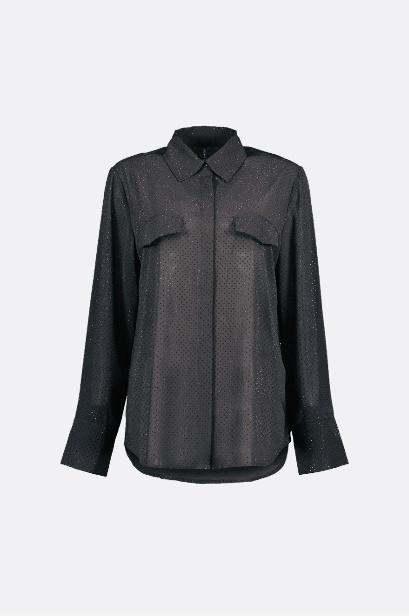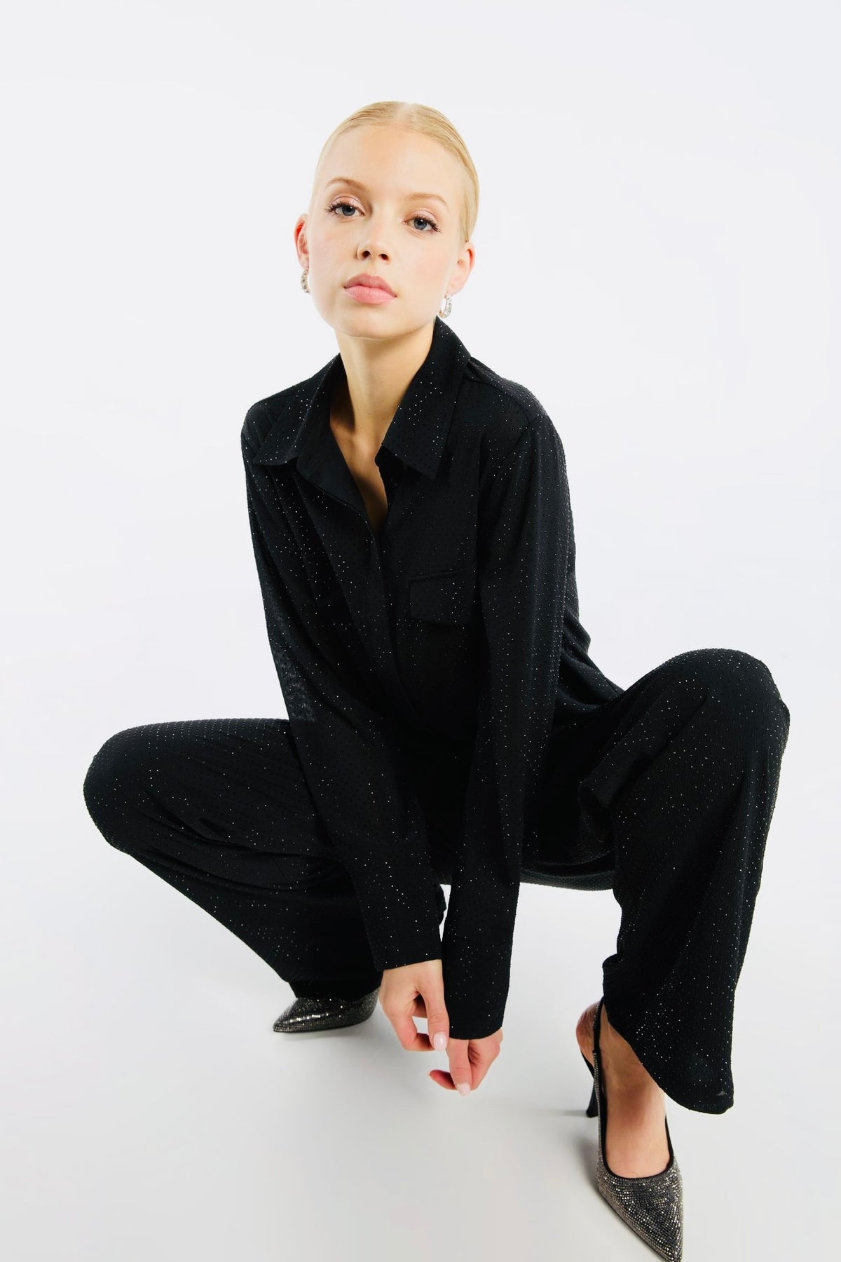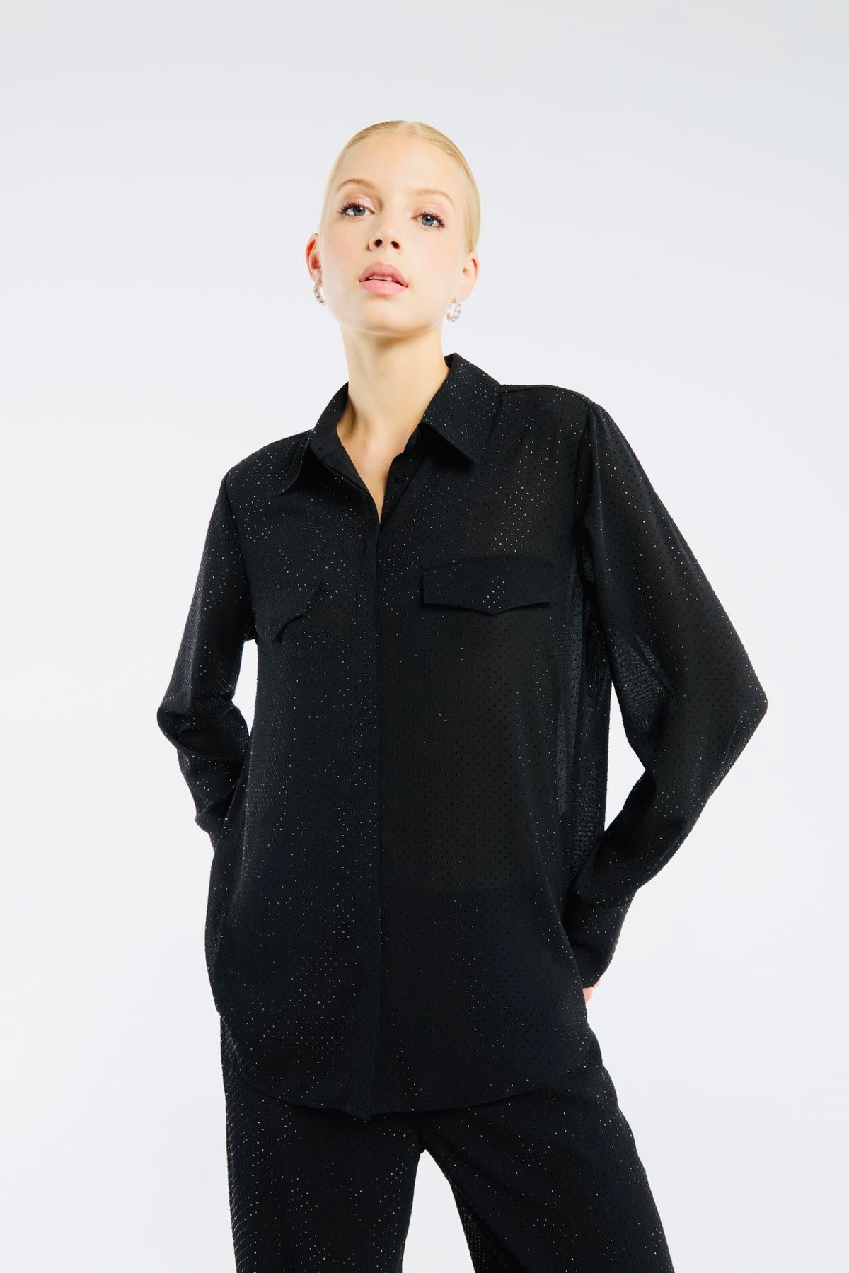 Chemisier orné de strass pour une touche élégante et brillante. Coupe droite, idéal pour sublimer vos tenues.