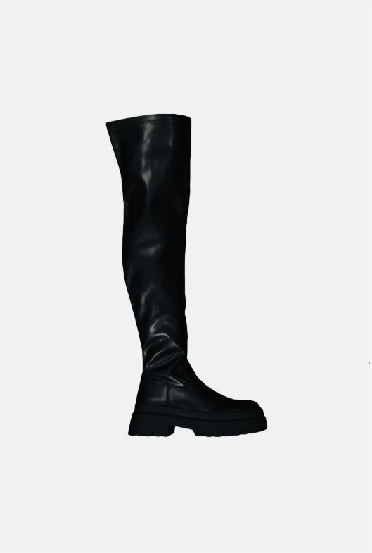 Bottes hautes arrivant au-dessus du genou, conçues pour offrir un style audacieux et moderne. Leur tige en polyuréthane imite parfaitement l’aspect du cuir, tout en assurant une excellente résistance. La silhouette élancée met en valeur la jambe, tandis que la conception épaisse apporte stabilité et présence. La doublure intérieure douce améliore le confort, et la semelle antidérapante en caoutchouc thermoplastique assure une bonne accroche. Idéales pour les looks d’automne/hiver, avec robes, shorts ou jeans ajustés.