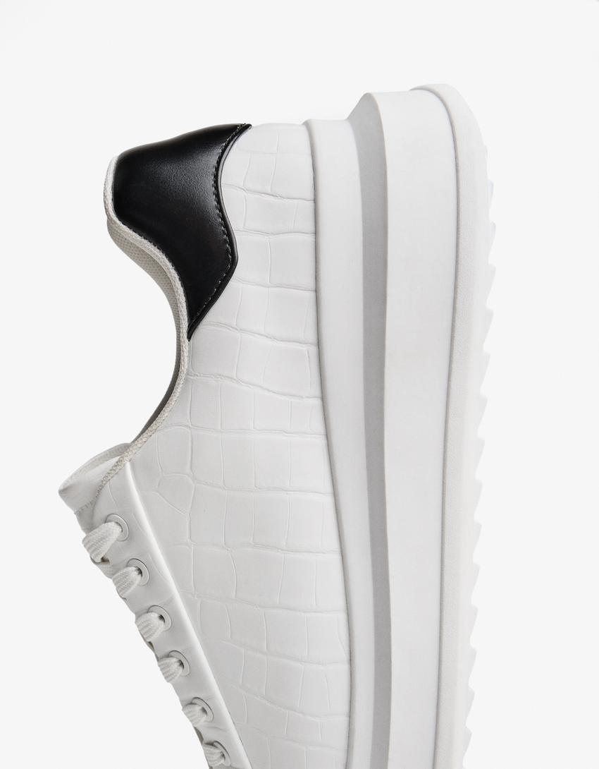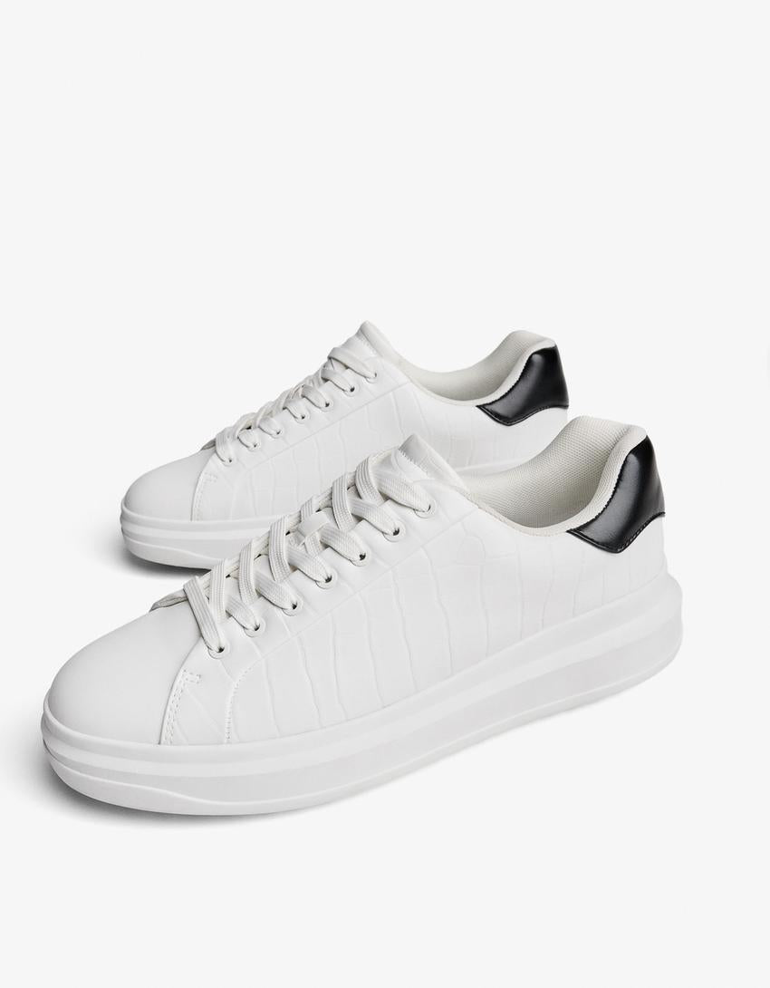 Baskets modernes au design urbain avec une semelle épaisse pour un confort optimal et un style contemporain. La tige en polyuréthane offre une finition résistante, tandis que la doublure douce et la semelle intérieure en polyester assurent un confort longue durée. Idéales pour compléter un look streetwear ou casual.