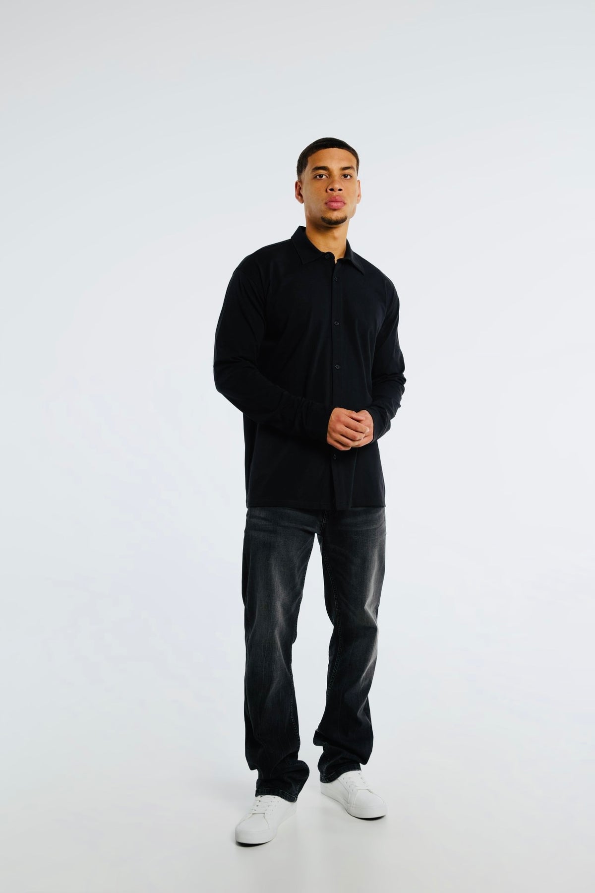 Chemise classique à manches longues, confectionnée dans un tissu doux et extensible pour un ajustement confortable et élégant. Col chemise et fermeture boutonnée à l’avant.