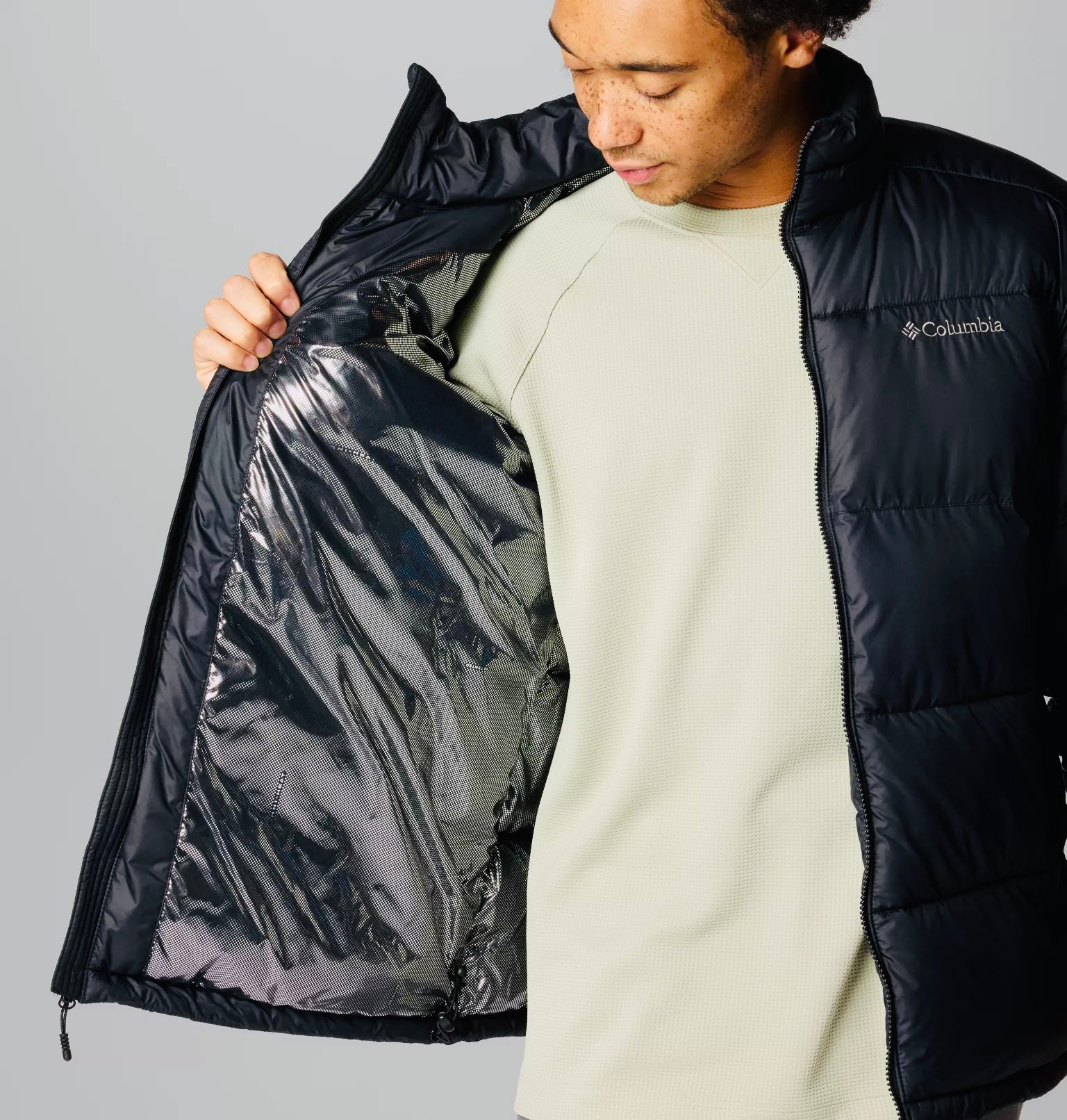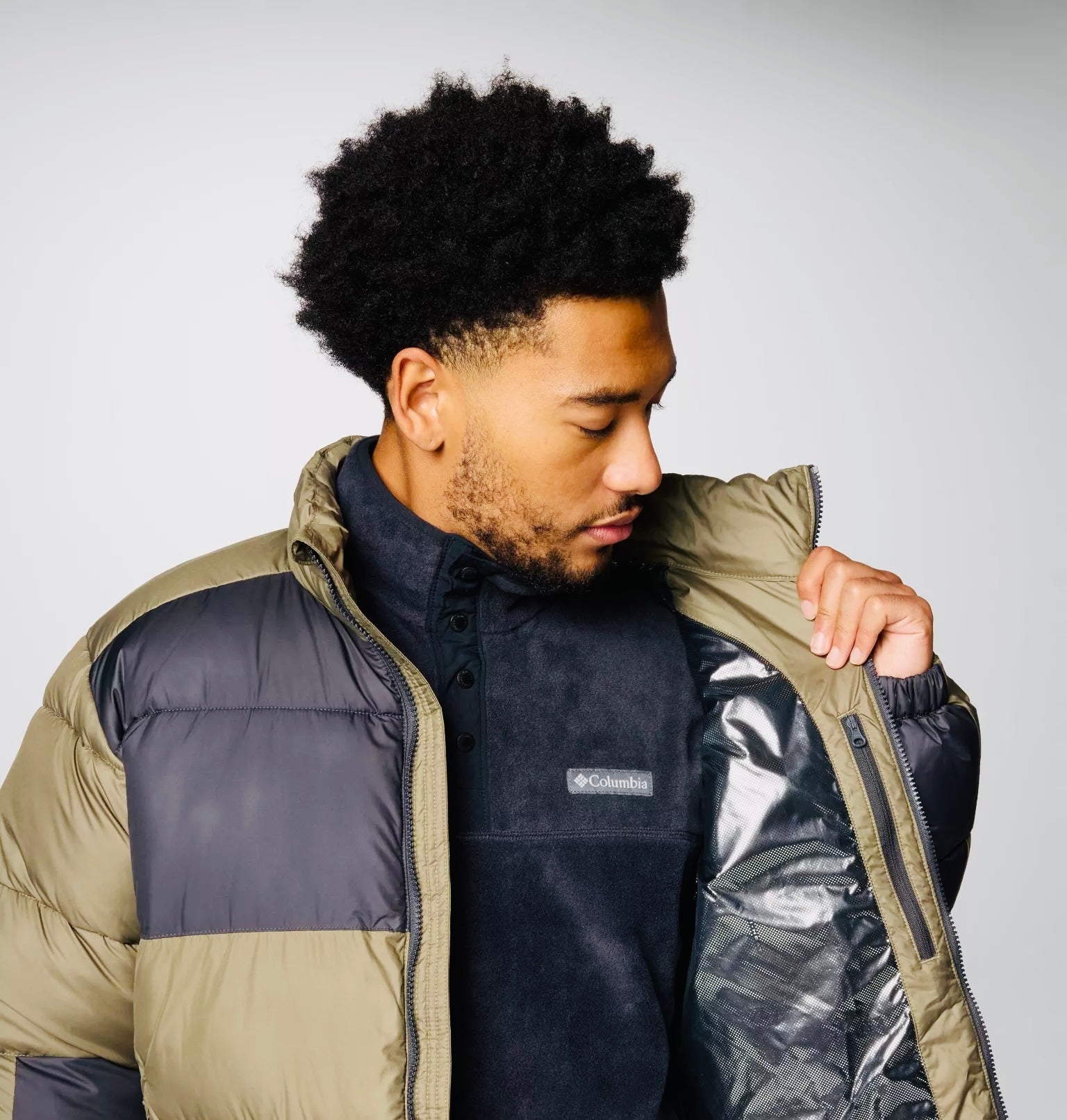 Chaleur et confort avec la doudoune Pike Lake de Columbia. Déperlante et isolée avec du polyester 100% recyclé et une doublure Omni-Heat™, elle protège efficacement du froid tout en offrant un style urbain et pratique.