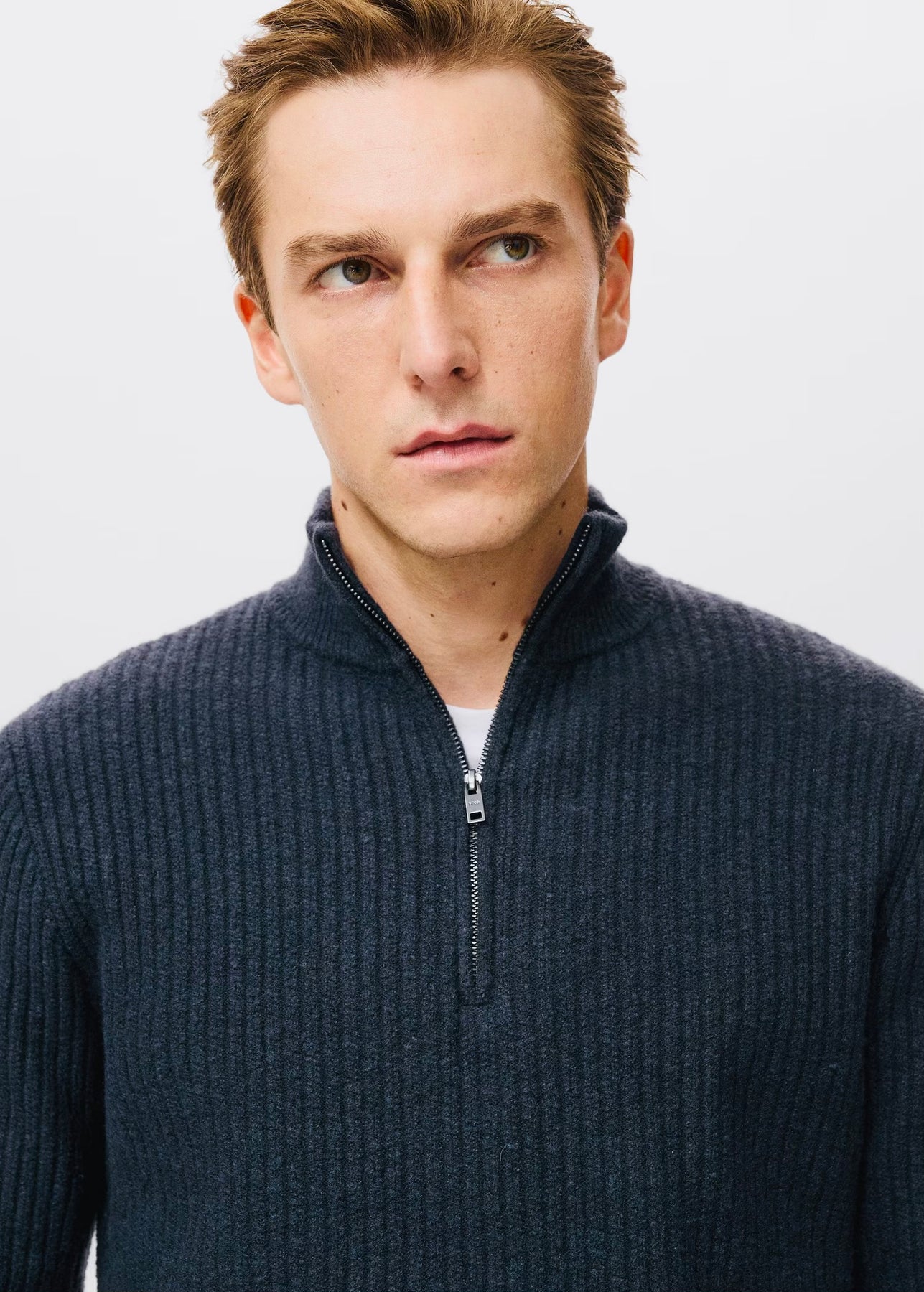 Pull over en maille côtelée à col zippé
