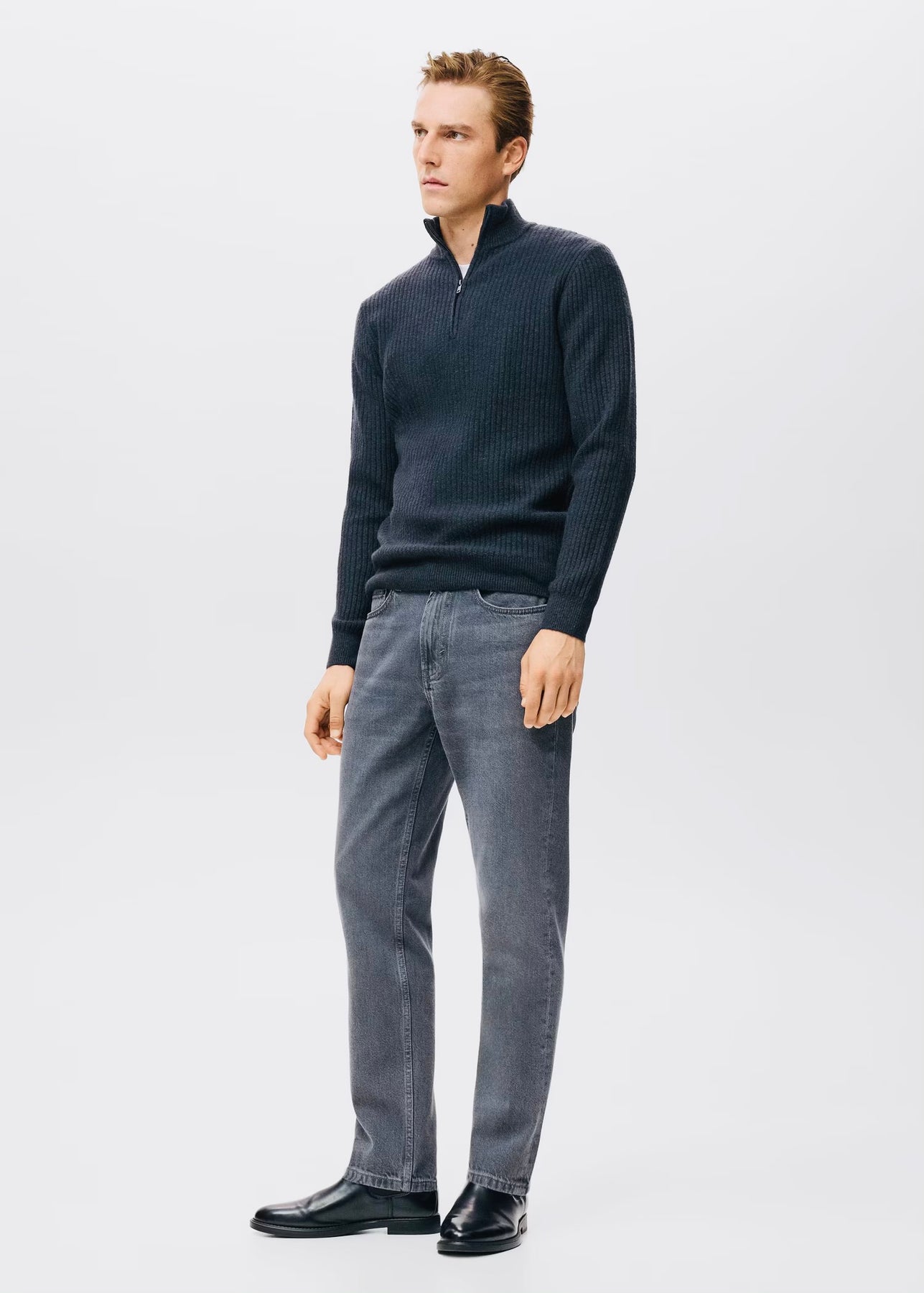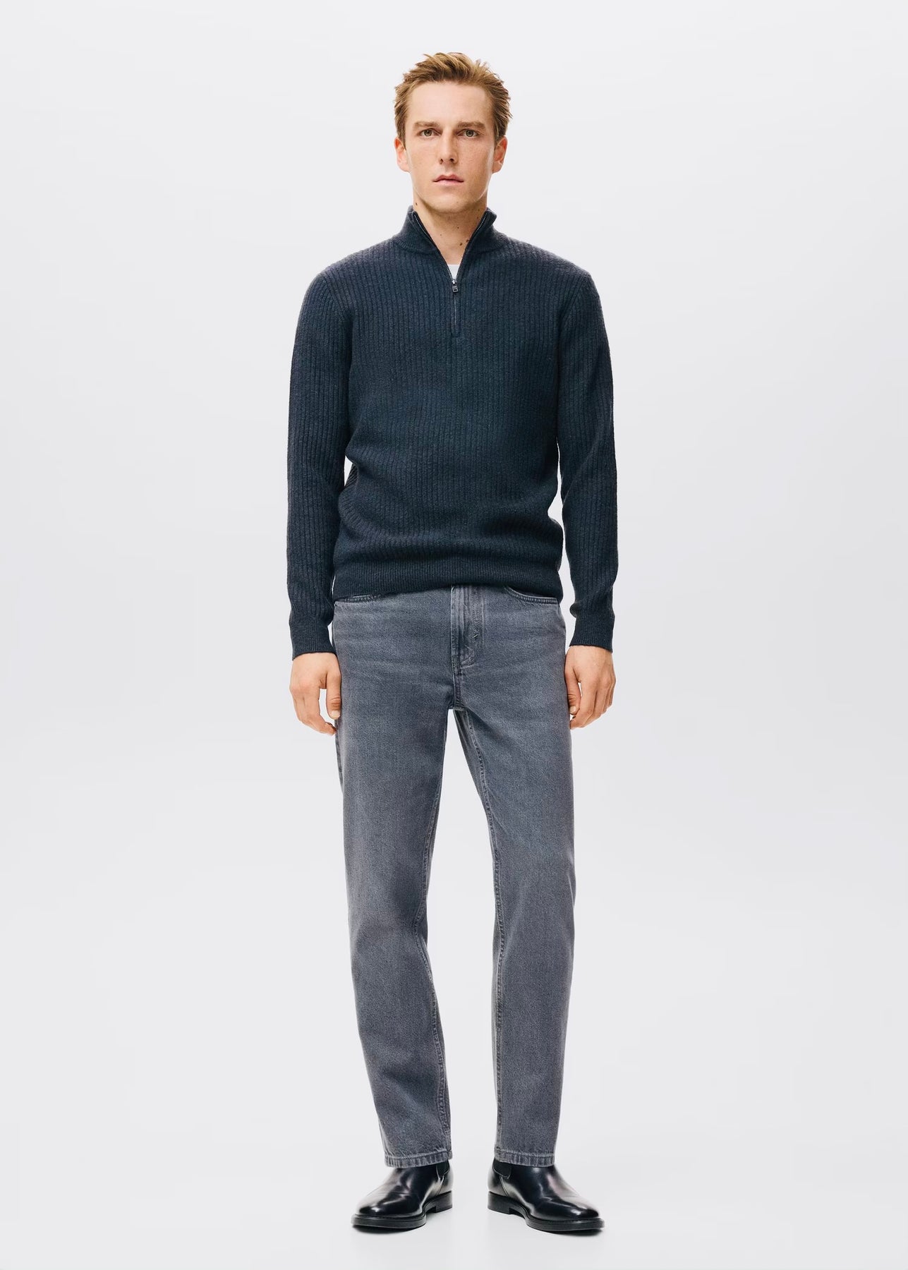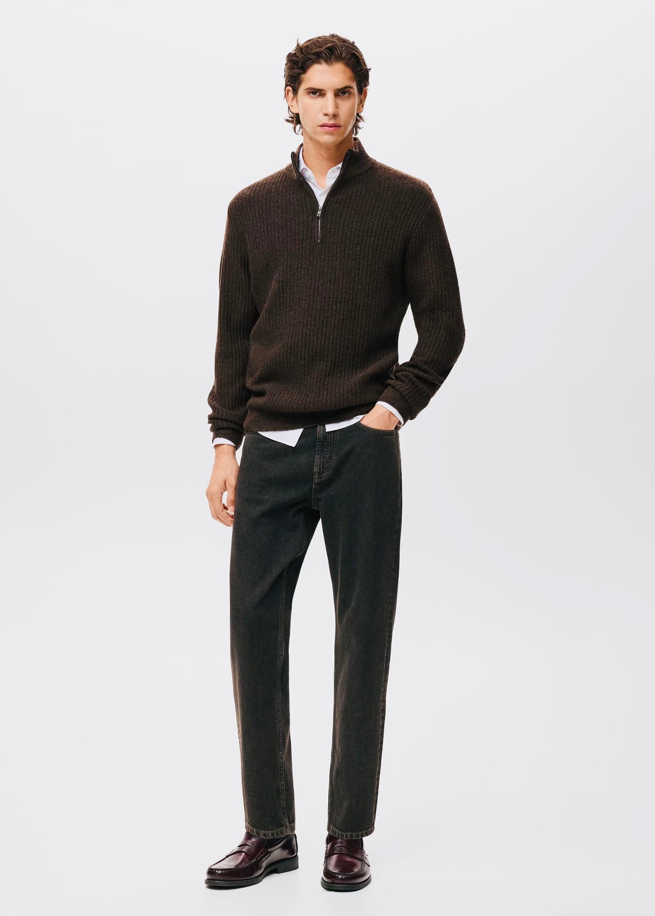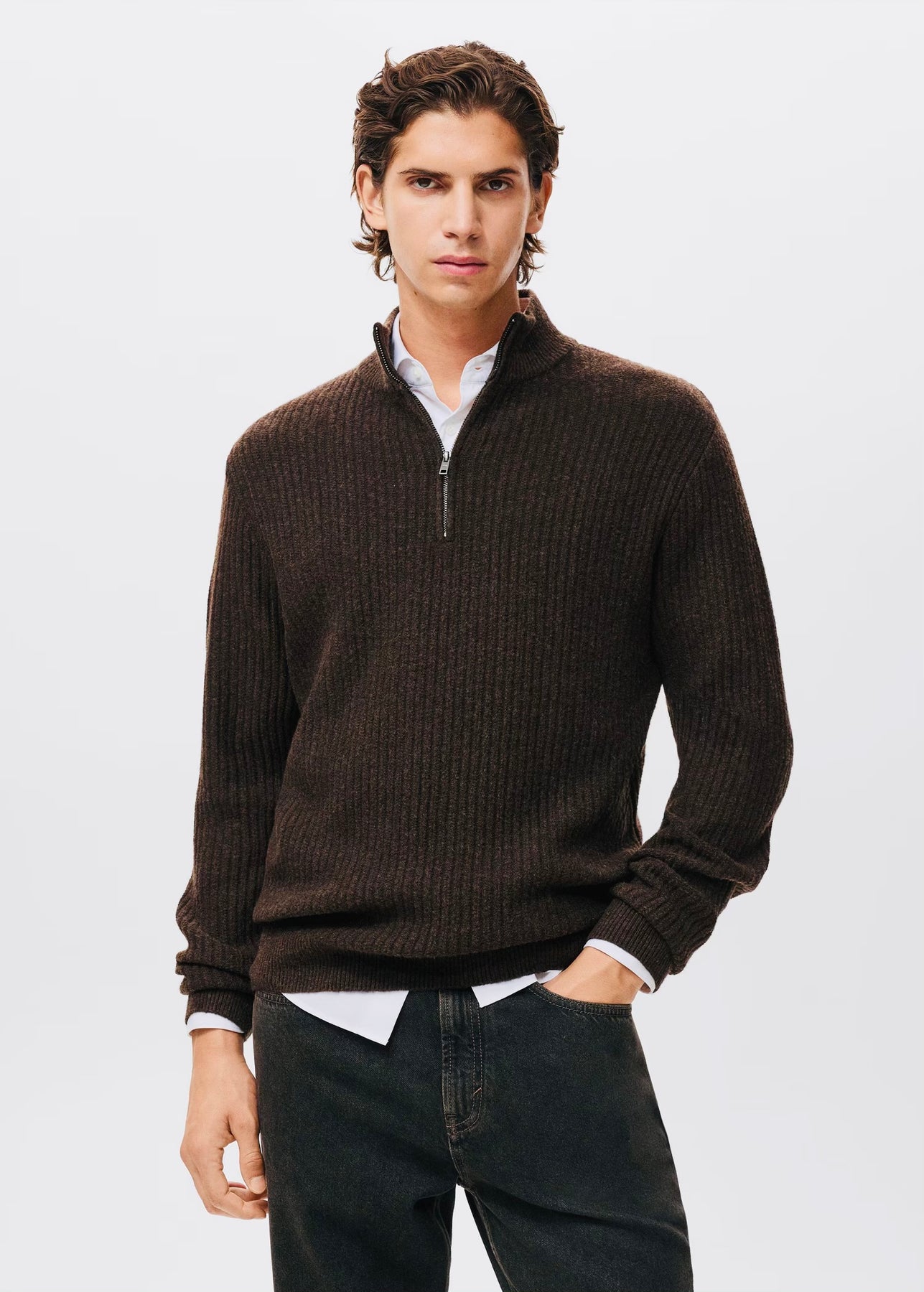 Chic et confortable, ce pull-over droit en maille côtelée est doté d’un col montant à fermeture éclair pour plus de style et de praticité. Les poignets côtelés et la longueur standard offrent une finition soignée et un confort optimal au quotidien.