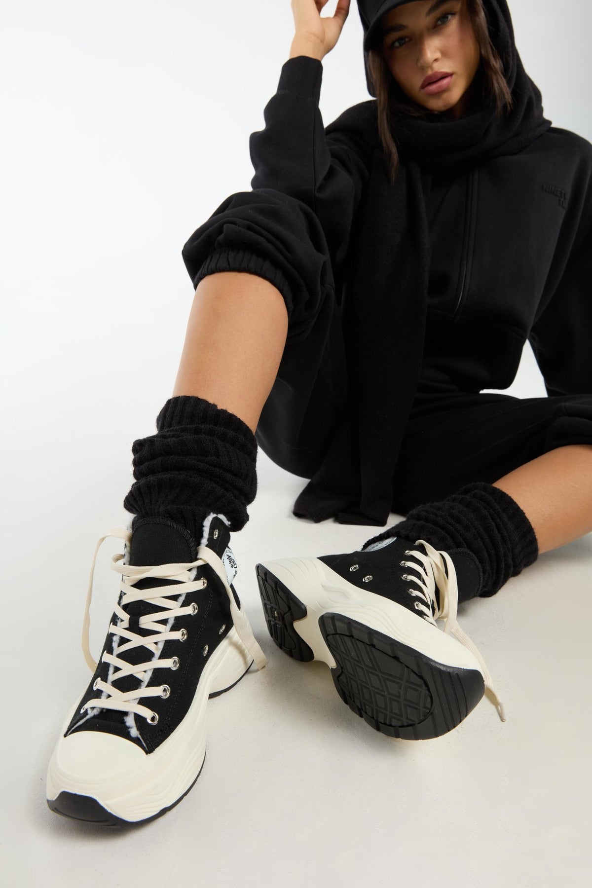 Baskets montantes au style urbain et moderne, conçues pour un confort optimal au quotidien. Dotées d’une partie supérieure en coton, d’une doublure douce et d’une semelle robuste, elles allient style et praticité.