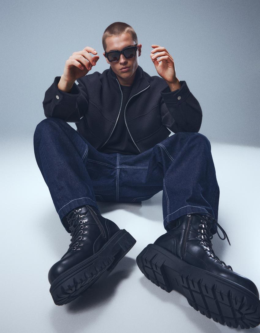 Bottines en simili cuir avec détails métalliques. Languette avant, doublure confortable et semelle résistante.
